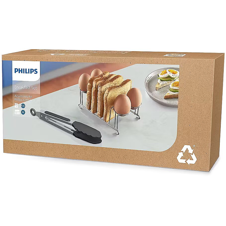 MediumDescription EN - The Philips Airfryer breakfast set makes preparing a perfect morning meal effortless. Designed to cook a wholesome breakfast for the whole family at once, it allows you to easily prepare boiled eggs, toast, sausages, and vegetables. • Quick and easy to clean – dishwasher safe