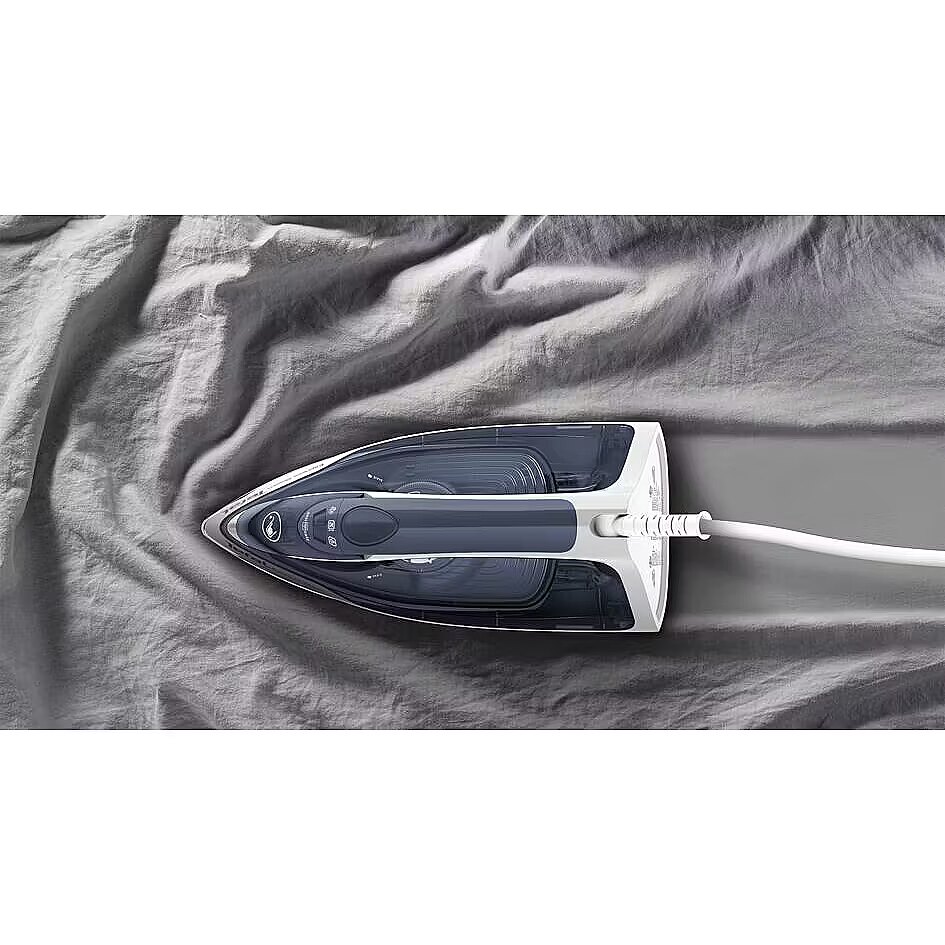 Tehniskās īpašības: Jauda: 2400 W Tvaika plūsma: līdz 40 g/min Tvaika pastiprinājums: 160 g/min Pamatne: Durilium AirGlide Ūdens tvertnes ietilpība: 270 ml Vertikālā tvaicēšana: Jā Izsmidzināšanas funkcija: Jā Pretpilienu sistēma: Jā Pašattīrīšanās funkcija: Jā Automātiskā izslēgšanās: Nē Vada garums: 2.0 m Krāsa: Zila / Melna Svars: ~1.3 kg