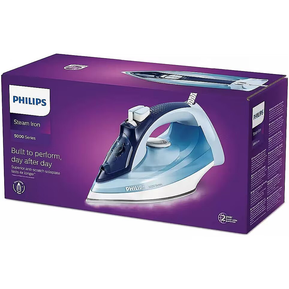 ProdDesc - Philips 5000 Series Steam iron DST5030/20 2400 W power 45 g/min continuous steam 180 g steam boost SteamGlide Plus