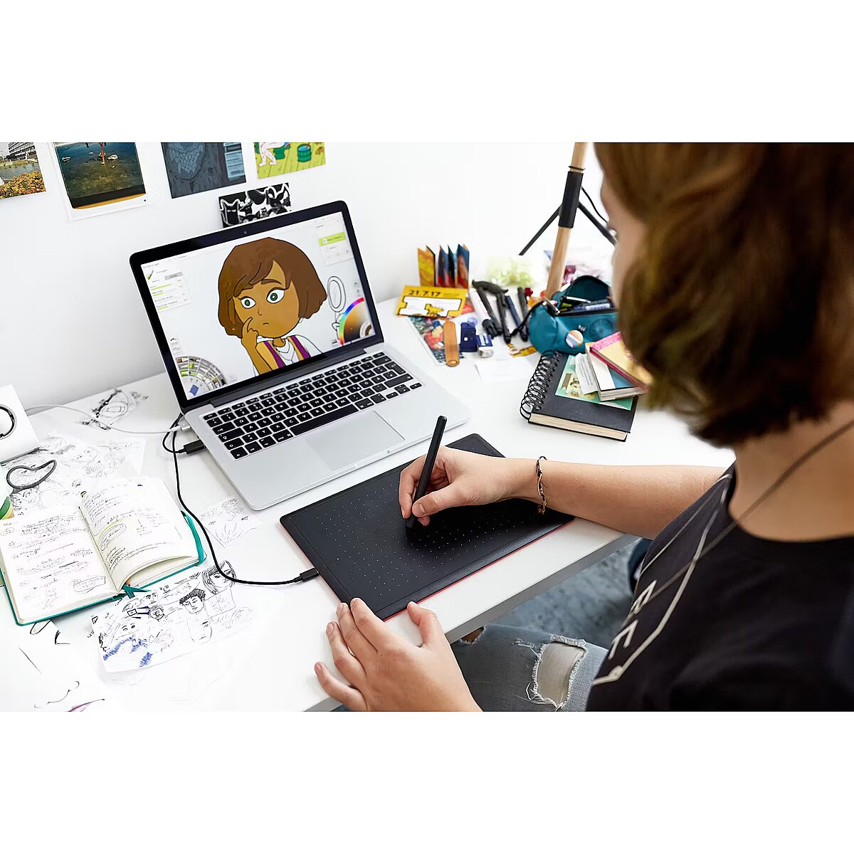 Digitaalsele kunstile üle minemine ei saakski lihtsam olla kui koos One by Wacom graafikalauaga. Komplektis olev puutetundlik pliiats istub käes loomulikult, justkui tavapärane pliiats, millega harjunud oled, ning loob visandeid ekraanile samasuguse täpsusega kui pliiats paberile. Nii kompaktne, et võta või kaasa