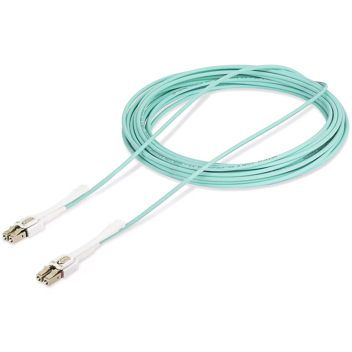 LongDesc - Optimize fiber patch cabling in high-density patching applications where cables are prone to bendingLC/UPC to LC/UPC OM4 Multimode Fiber Optic Cable enables 40/100G network connections. The push-pull tabs on each connector ensure quick connection and removal, facilitating accurate installation in high connection density environments. The bend-insensitive fiber and molded strain reliefs support cable runs requiring micro/macro bends while maintaining low attenuation. The retractable strain-relief housings enable toolless in-field polarity swapping. Color-coded LC-Duplex connectors ensure error-free polarity configuration.Engineered for Optimal PerformancePrecision-manufactured ceramic ferrules ensure accurate fiber alignment to prevent connectivity issues and minimize insertion loss. Designed for reliability in high-density network applications, the LC to LC UPC polished fiber ends greatly improves return loss characteristics. The Laser-Optimized Multi-Mode Fiber (LOMMF) OM4 fiber patch cable is ideal for 850nm and 1300nm Vertical-Cavity Surface-Emitting Laser (VCSEL) and LED sources.CompatibilityThis multimode 50/125µm fiber optic patch cord is backward compatible with OM3 and 1/10/40G networks, ensuring a reliable connection in legacy fiber environments.LSZH Cable JacketHoused in a LSZH (Low-Smoke, Zero-Halogen) flame-retardant jacket, this OM4 fiber cable emits low smoke and toxic fumes when exposed to extreme heat or in the event of a fire. This enables safer cable installations in areas with poor ventilation including some industrial settings, self-contained environments such as trains and aircraft, as well as residential settings where compliance with building codes must be considered.Each OM4 fiber cable is also individually tested for insertion loss performance that meets or exceeds the TIA/EIA-568 industry standard, for guaranteed compatibility and 100% reliability.The StarTech.com Advantage