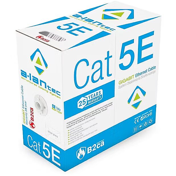 Description - Najwyższa klasa palności CPR - B2ca dostępna w kategorii 5E UTP z wymaganym certyfikatem CPR. Kabel zweryfikowany przez zewnętrzne notyfikowane laboratoria pod względem parametrów transmisyjnych (INTERTEK) oraz euroklasy palności CPR ( SGS Fimko Ltd.), uzyskując parametry najwyższej jakości dla tej klasy: CPR B2ca s1a, d0, a1. Podklasa s1a jest najwyższą- najostrzejszą w zakresie wymagań, tj. oprócz kryteriów klasy s1 posiada dodatkowe kryterium przejrzystości powietrza przy wydzielaniu dymu powyżej 80%. Kategoria transmisji 5e, Klasa D, żyły w pełni miedziane, ośrodek kabla nieekranowany, przeznaczony do pracy w środowisku nienarażonym na oddziaływanie zakłóceń elektromagnetycznych. Spełnia normy branżowe: ISO/IEC 11801 (norma międzynarodowa, zgodna z wzorowaną na niej normą polską i europejską PN-EN 50173) oraz ANSI/TIA 568 (norma stosowana na rynku amerykańskim). Kable teleinformatyczne tego typu przeznaczone są do wykonywania instalacji wewnętrznych poziomych i pionowych w sieciach teleinformatycznych oraz CCTV. Wszystkie przewody ALANTEC są zgodne z dyrektywą CPR dotyczącą klasyfikacji wyrobów budowlanych pod względem odporności na działanie ognia oraz definiujące metody badań dla przewodów przeznaczonych do instalowania w budynkach. Produkt objęty 25 letnią gwarancją systemową.