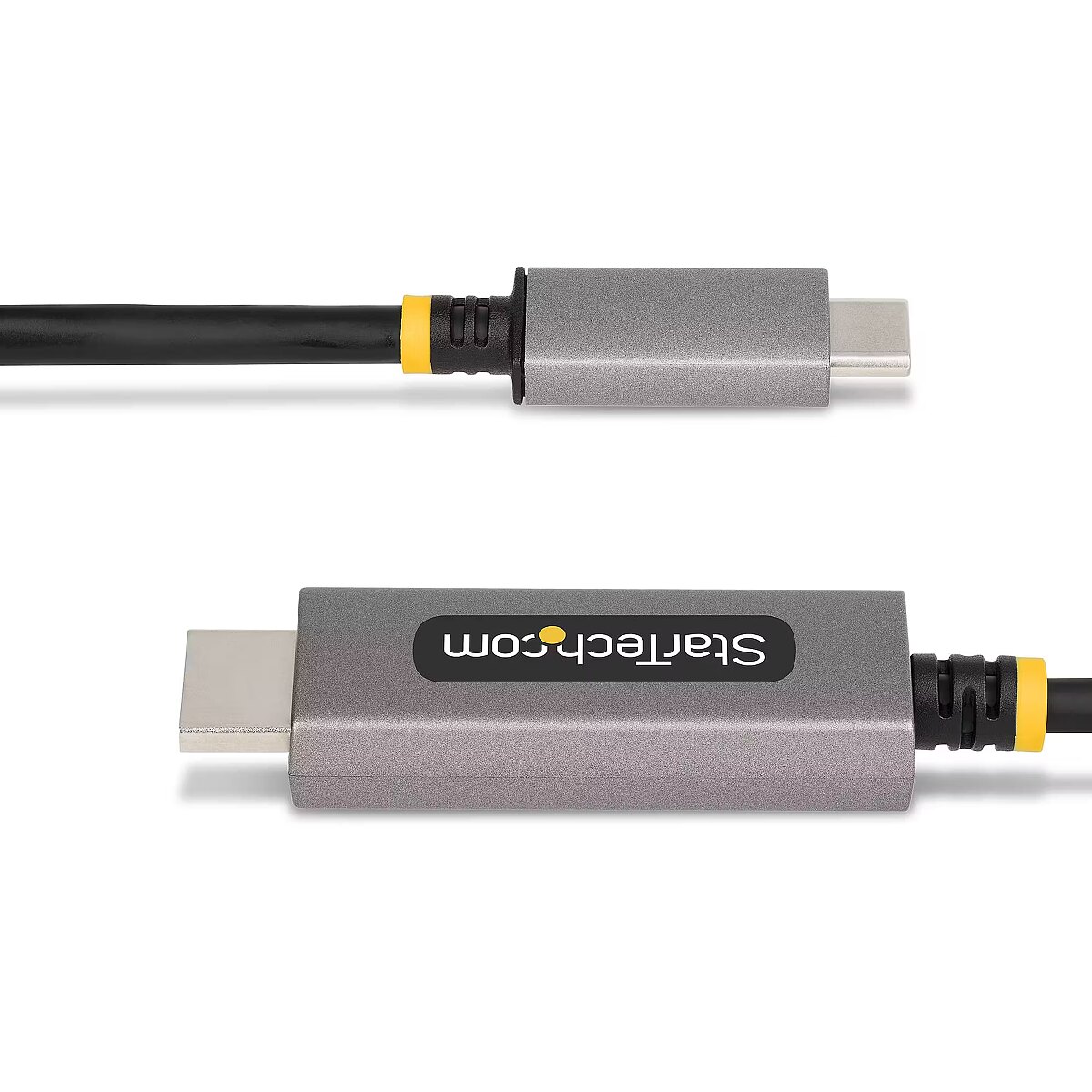 LongDesc - Connect a DP Alt Mode enabled USB-C source to an HDMI monitor, located up to 10ft (3m) away, with support for HDR video and resolutions up to 8K 60HzConnect an 8K 60Hz or a 4K 144Hz HDMI display to a DP Alt Mode-enabled USB Type-C source, at a distance of up to 9.8ft (3m), using this USB-C to HDMI Adapter Cable.High-Resolution HDR VideoThis USB-C to HDMI Cable enables resolutions of up to 8K 60Hz and is HDMI 2.1 FRL complaint. It supports HDR10, HDCP 1.x/2.2/2.3, and DSC 1.1/1.2a. The adapter cable supports 7.1 channel audio with Dolby Atmos and DTS:X.Hardware PlatformSingle MonitorDisplayPort Alt ModeIntel 11 th Gen & Later Processors8K 60Hz or 4K 144Hz*DisplayPort 1.4Nvidia RTX3000 and AMD RX6000 or later8K 60Hz or 4K 144HzDisplayPort 1.4Intel 10th Gen & Earlier4K 60HzDisplayPort 1.4Apple M1/M2 + Pro & Max4K 60Hz**DisplayPort 1.4*DSC support required to reach maximum resolution capabilities on Intel 11th Gen or later**Apple MacBook's with M1/M2 silicon can only support up to 4K 60Hz through HDMIUniversal CompatibilityThe USB-C to HDMI Converter Cable is compatible with laptops and devices from various brands such as Dell, HP, Lenovo, Microsoft, and more. It works with all hardware platforms and any operating system. The USB Type-C to HDMI Cable requires no drivers or software and works with USB-C DP Alt Mode, USB4, Thunderbolt 3, and Thunderbolt 4 laptops and devices.Note: Apple M1/M2 devices, including MacBook Pro, can only support up to 4K 60Hz over USB-C DP Alt Mode and cannot achieve 8K 60Hz.Thoughtfully DesignedCombining a video adapter and cable minimizes potential points of failure and signal loss. Adaptive receiver equalization optimizes the input signal and amplifies the output signal to ensure compatibility with high-resolution monitors. The cable is equipped with cage shielding to prevent Electromagnetic Interference (EMI).The StarTech.com Advantage