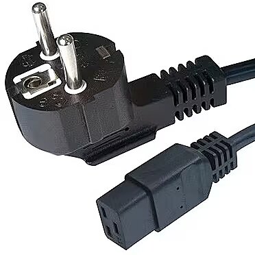 Technical details > Other features - German Schuko input and C19 output. Molded plugs with integrated strain relief. EU input plug: Shuko type with ground contact hole and 4.9 mm pins. Wires: profile area 1.5 sq.mm, 16 A rating.
