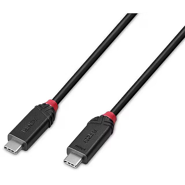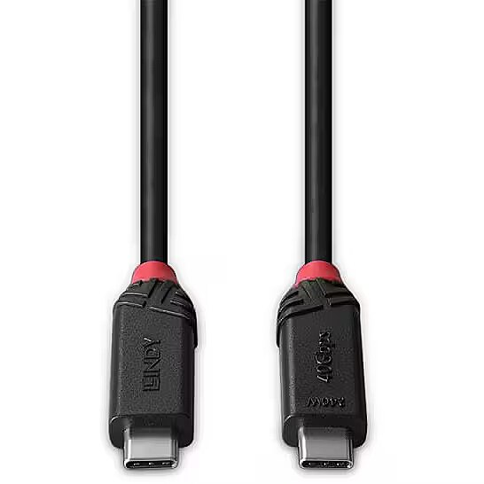 LongDesc - The Black Line USB4 Type C to C cables from Lindy's Cable Lines concept are perfect for home and small office use.Black Line USB4 Type C to C cables feature triple shielded construction with copper conductors for premium performance and corrosion resistance. Nickel plated connectors and gold plated contacts maintain signal integrity and reliability.USB bandwidths up to 40Gbps are supported for rapid transfer of large data volumes. These cables are E-marked to provide 240W (48V 5A Extended Power Range) of power to devices using the most efficient power delivery profiles. It supports connecting a 8K or dual 4K UHD displays for stunning contrast and colour depth.USB Type C features a reversible connector, so no matter which orientation the cable is inserted, a connection will always be found. This connector allows a fully bi-directional cable with automatic host and device negotiation.