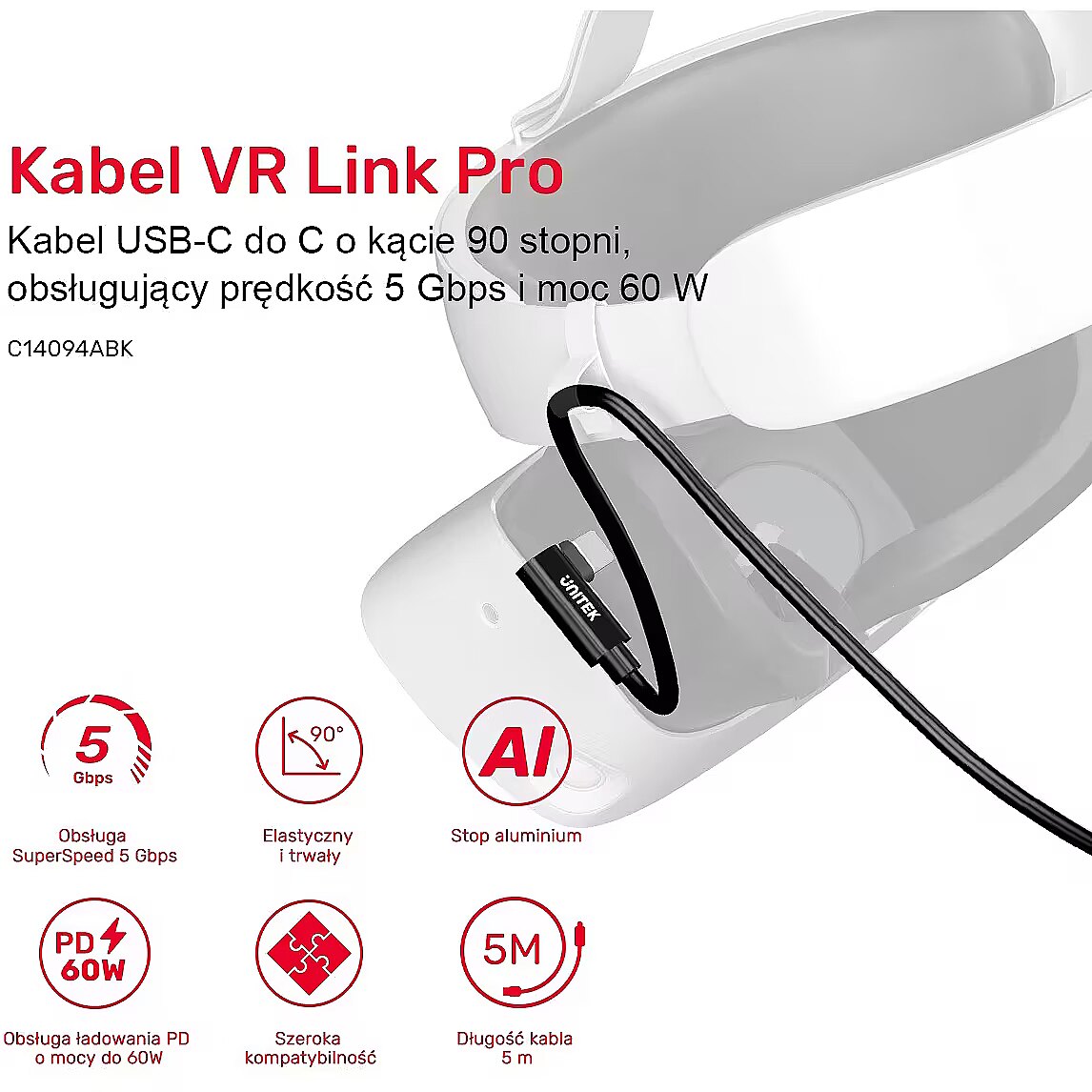 Name - Unitek Kabel VR Link Pro USB-C do C obsługuje 5Gps i 60W