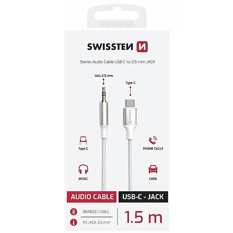 Swissten Audio Adapter Textile USB-C - 3.5mm Jack Cable 1.5m