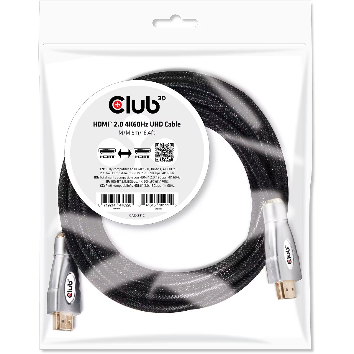 ShortSummaryDescription - CLUB3D HDMI 2.0 4K60Hz UHD Cable 5m/16.4ft, 5 m, HDMI Type A (Standard), HDMI Type A (Standard), 3D, 18 Gbit/s, Black