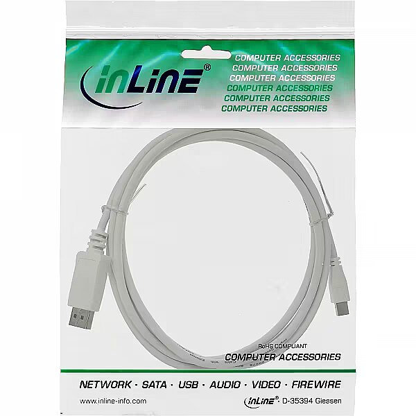 ShortSummaryDescription - InLine Mini DisplayPort to DisplayPort Cable white 2m, 2 m, mini DisplayPort, DisplayPort, White, Male/Male, 74 g