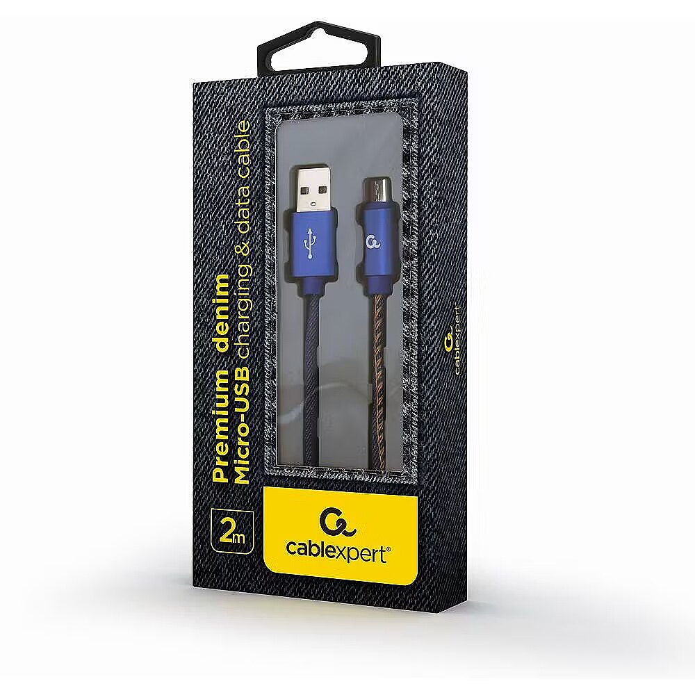 Description - Cable Micro USB premium jeans 2 m Ideal for connecting or charging smartphones, tablets Gold-plated connectors ensure a reliable connection Stylish design with a cotton braid and plugs in a metal sheath