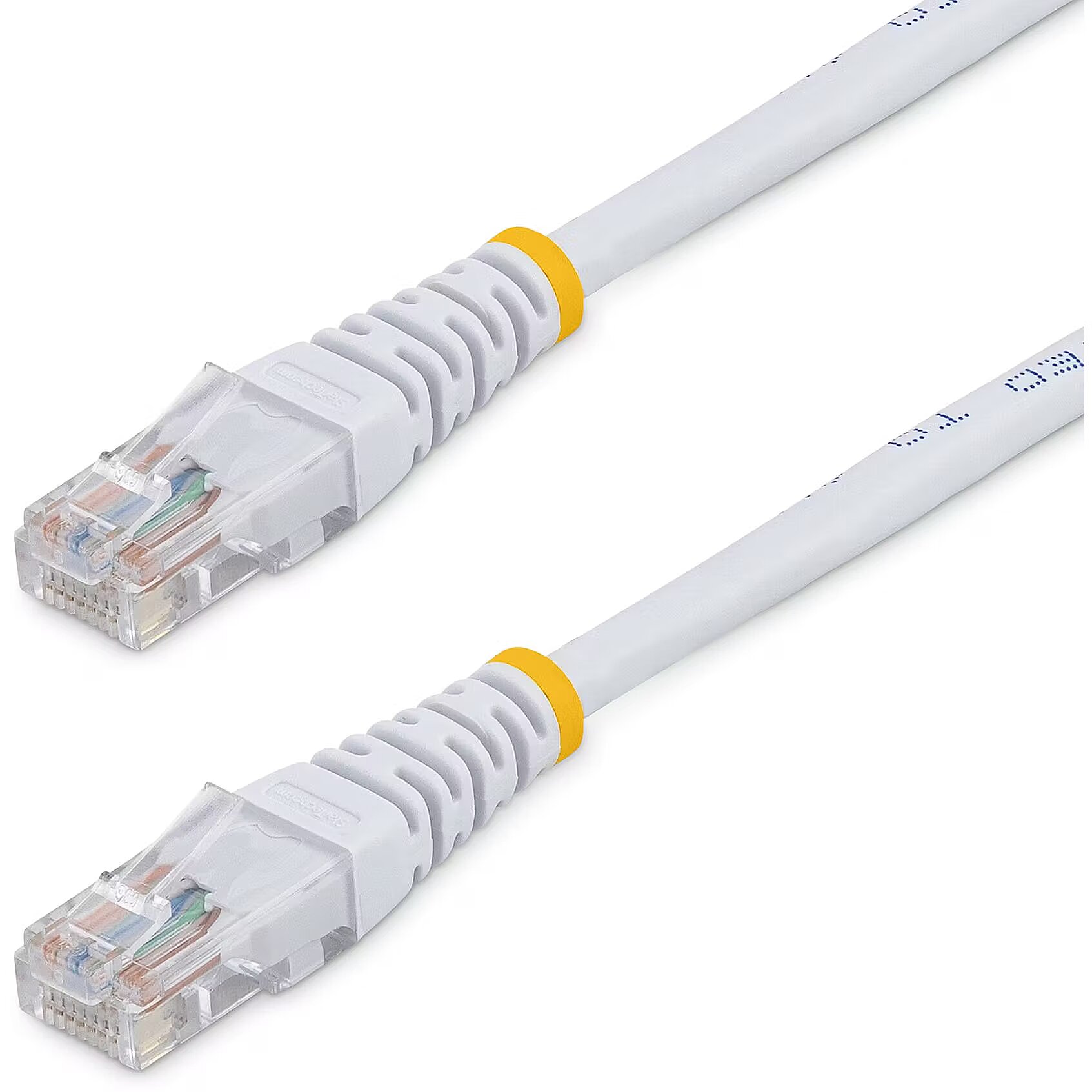 LongSummaryDescription - StarTech.com 15m Cat5e White Molded RJ45 UTP Cat 5e Patch Cable - 15 m Patch Cord. Cable length: 15 m, Cable standard: Cat5e, Cable shielding: U/UTP (UTP), Connector 1: RJ-45, Connector 2: RJ-45, Connector contacts plating: Gold, Data transfer rate: 100 Mbit/s, Product colour: White
