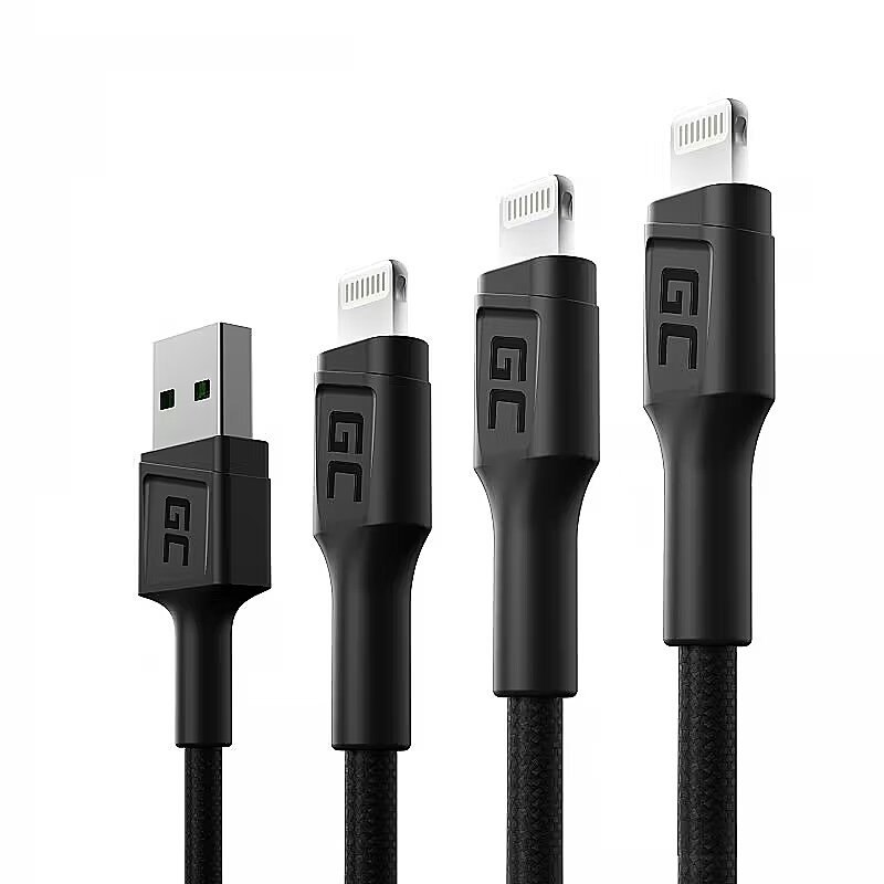 Green Cell PowerStream, USB-A to Lightning, 0.3m/1.2m/2m - Pack of 3