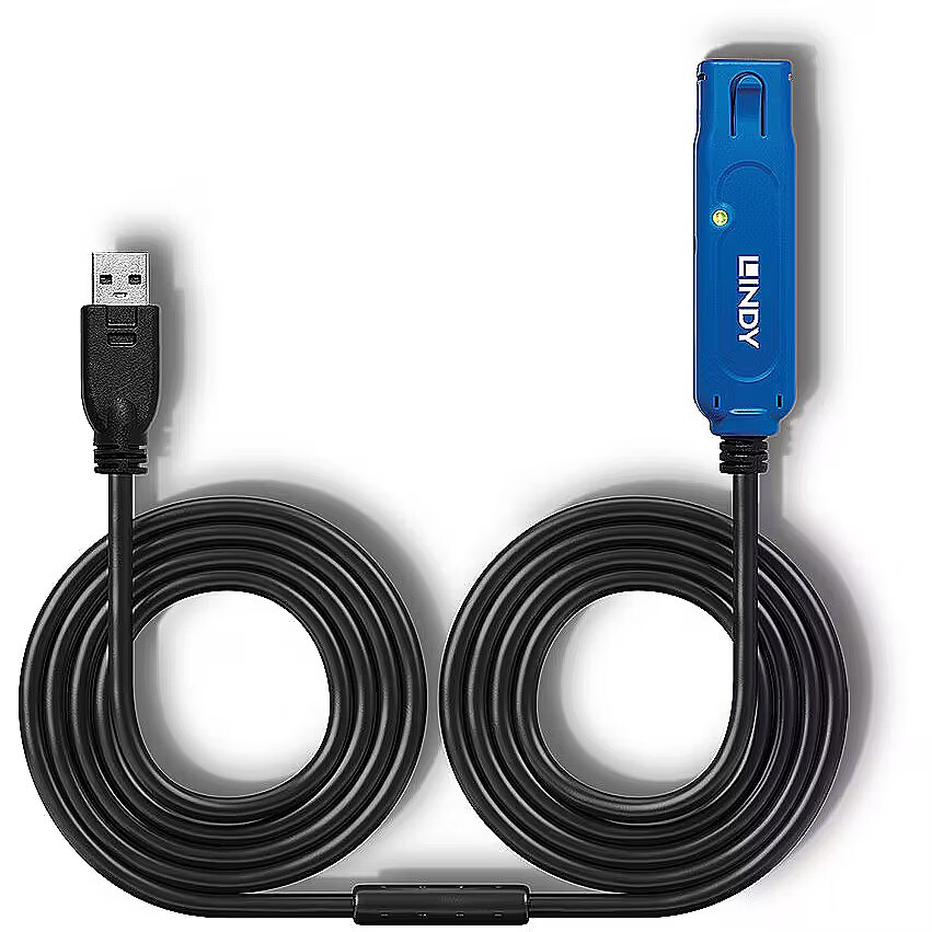 Description - 10m USB 3.0 Active Extension Pro Extend USB 3.0 connections up to 40m The Lindy USB Active Extension Cable Pro is a high performance active cable that allows access to USB 3.0 SuperSpeed peripherals over long distances. With support for data transfer speeds of up to 5Gbps this extension cable is perfect for transferring large data volumes quickly and reliably. This 10m extension cable can be used standalone or as part of the Lindy USB 3.0 Active Extension System Pro. This system is a modular solution that can combine multiple USB Active Extension Pro cables and a USB 3.0 Active Extension Pro hub to distribute USB signals to up to 4 devices at about 40m (depending on the cable configurations used).