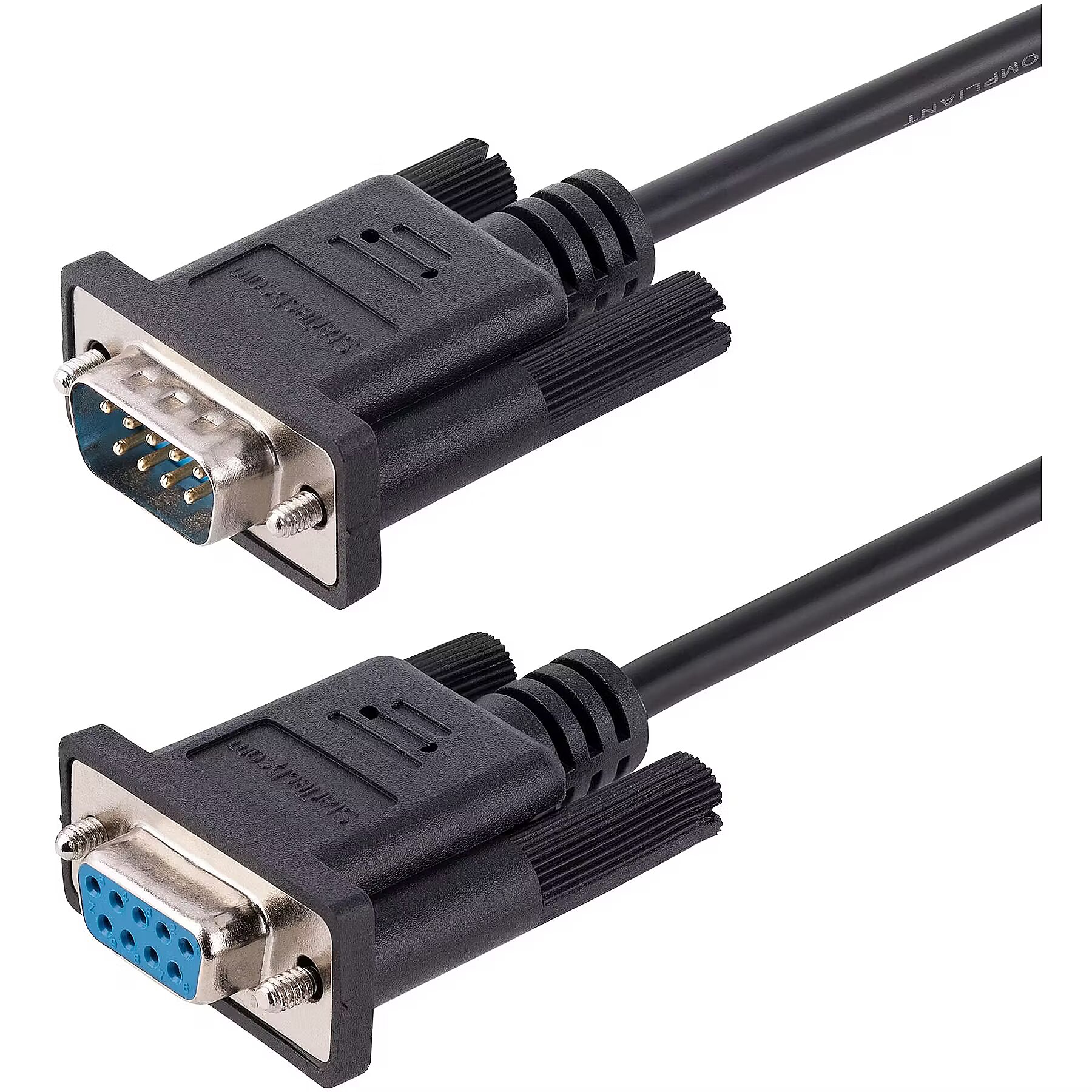 LongDesc - Connect serial enabled devices at a distance of up to 3mThis null modem serial cable features male and female DB9 connectors. It enables a connection between serial devices at a distance of up to 3 meters. The length of the cable allows for flexible serial device setup configuration.The crossover serial cable mitigates EMI with its high-quality shielded metal shell connectors and aluminum mylar cable shielding.Install and secure the RS232 serial cable, using the thumbscrews. These connector screw locks prevent accidental disconnection which could lead to data loss/corruption.This product is backed for life, including free lifetime 24/5 multi-lingual technical assistance.The StarTech.com Advantage