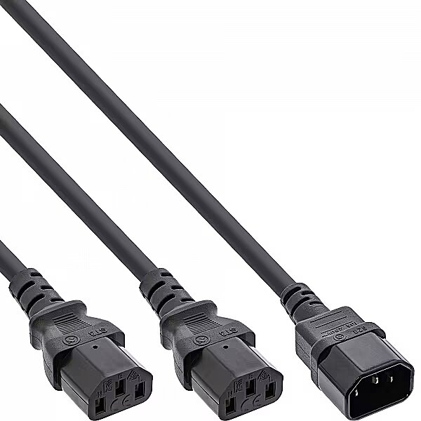 LongDesc - InLine® Power Y-cable, 1x IEC-C14 to 2x IEC-C13The InLine® Power Y-cable enables the simultaneous power supply of two devices via a single IEC connector. Thanks to its robust design and availability in various lengths, it is ideal for use in server rooms, data centres, IT workstations or industrial environments. It ensures efficient and space-saving cabling, especially in areas where several devices need to be operated in a confined space.This Y-cable offers you a reliable and flexible solution for cable management and the power supply of several devices via just one power connection.Technical data: