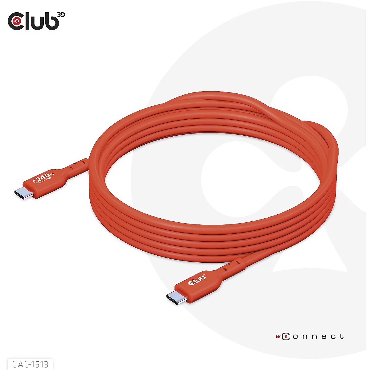 LongSummaryDescription - CLUB3D USB2 Type-C Bi-Directional USB-IF Certified Cable Data 480Mb, PD 240W(48V/5A) EPR M/M 3m / 9.84 ft. Cable length: 3 m. Connector 1: USB C, Connector 2: USB C, USB version: USB 2.0, Product colour: Orange