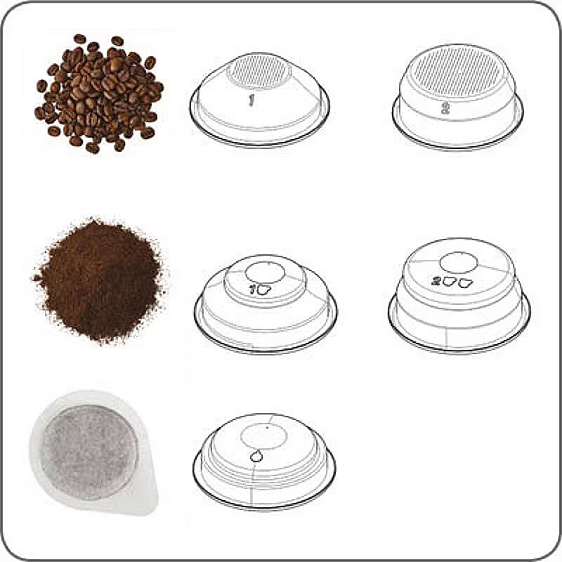 Worried about measuring coffee? A scoop and tamper are included. Prefer using pods? An E.S.E. pod filter is also included.