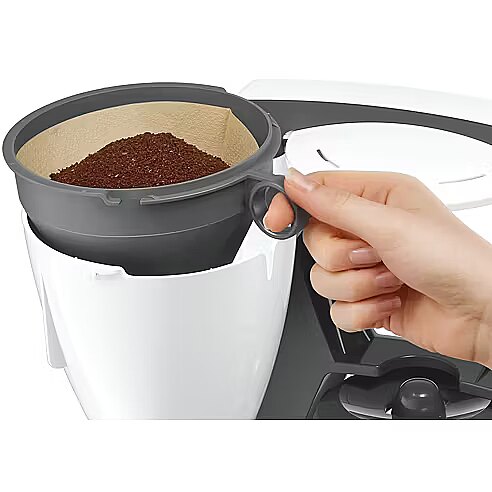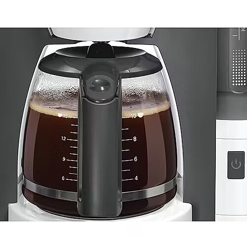 Technical_details - Colour: white/​grey Capacity: 15 cups Filter: pivoting filter, removable filter element Features: Anti-drip protection, removable water tank, transparent water level indicator, programmable water hardness level, hotplate, descaling program, cable rewind Security: automatic shutdown Power: 1200W