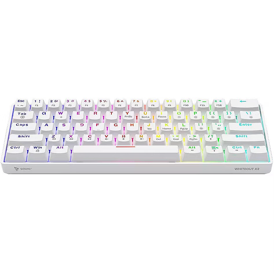 Description - Mechanical keyboard WHITEOUT X2 OUTEMU BLUE The Whiteout X2 OUTEMU BLUE mechanical keyboard guarantees an unparalleled gaming experience both at home and at gaming tournaments. It is distinguished by a small size of 60% and a layout reduced by function keys, number blocks, and arrow keys. It will be great for even the most demanding gamers.   Technical specifications: Keyboard type: Mechanical Keyboard layout: US (61 keys) Interface: USB Keycaps: ABS Switches: OUTEMU Blue Switch life: 50,000,000 clicks Hot Swap: Yes Keyboard dimensions: 292 x 102 x 39 mm Keyboard weight: 570+/-20 g Software: Yes N-key rollover & Anti-ghosting: Full Macro support: Yes USB cable length: 1.5 m Compatibility: Windows XP, Vista, Win 7 / 8 / 10 / 11, Linux, macOS, Android Kit contents: Mechanical keyboard, braided cable USB-A - USB-C, key and switch pulling tool, user manual     Full N-key rollover and anti-ghosting The mechanical keyboard from Savio offers full N-key rollover and anti-ghosting. Key rollover allows the keyboard to correctly register the clipping of pressed keys at one time. Whiteout X2 can correctly handle the pressing of even all keys at the same time. Anti-ghosting, on the other hand, ensures that when one or more keys are pressed, only those keys are registered, without those extra so-called ghost keys that were not touched. Thanks to these features, you don't have to worry about accidental unresponsiveness during intense gaming sessions. The keyboard is ready to meet any challenge.     Hot Swap option compatible with 3-pin switches Thanks to the Hot Swap feature, you can easily swap switches for any 3-pin switches according to your needs. Whether you prefer smooth and quiet operation or a strong and crisp feel, the Whiteout X2 keyboard allows you to customize it to your ideal gaming style.     OUTEMU Red, Brown, and Blue switches The keyboard offers a wide selection of OUTEMU Red, Brown, and Blue switches, providing a balance between smoothness, comfort, and responsiveness. Choose the right model that supports your gaming style and allows you to reach your full potential.   RGB backlighting RGB backlighting adds color to your gaming experience. Bring your rig to life with infinite color options that allow you to match your lighting to your mood, game, or aesthetic. Create your own lighting configurations and customize them to suit your needs.     Dedicated software Whiteout X2 comes with dedicated software you can customize features, lighting effects, and other button settings to make the keyboard perfectly tailored to your individual needs. Achieve full control over your gaming and take your gaming to the next level with Savio.