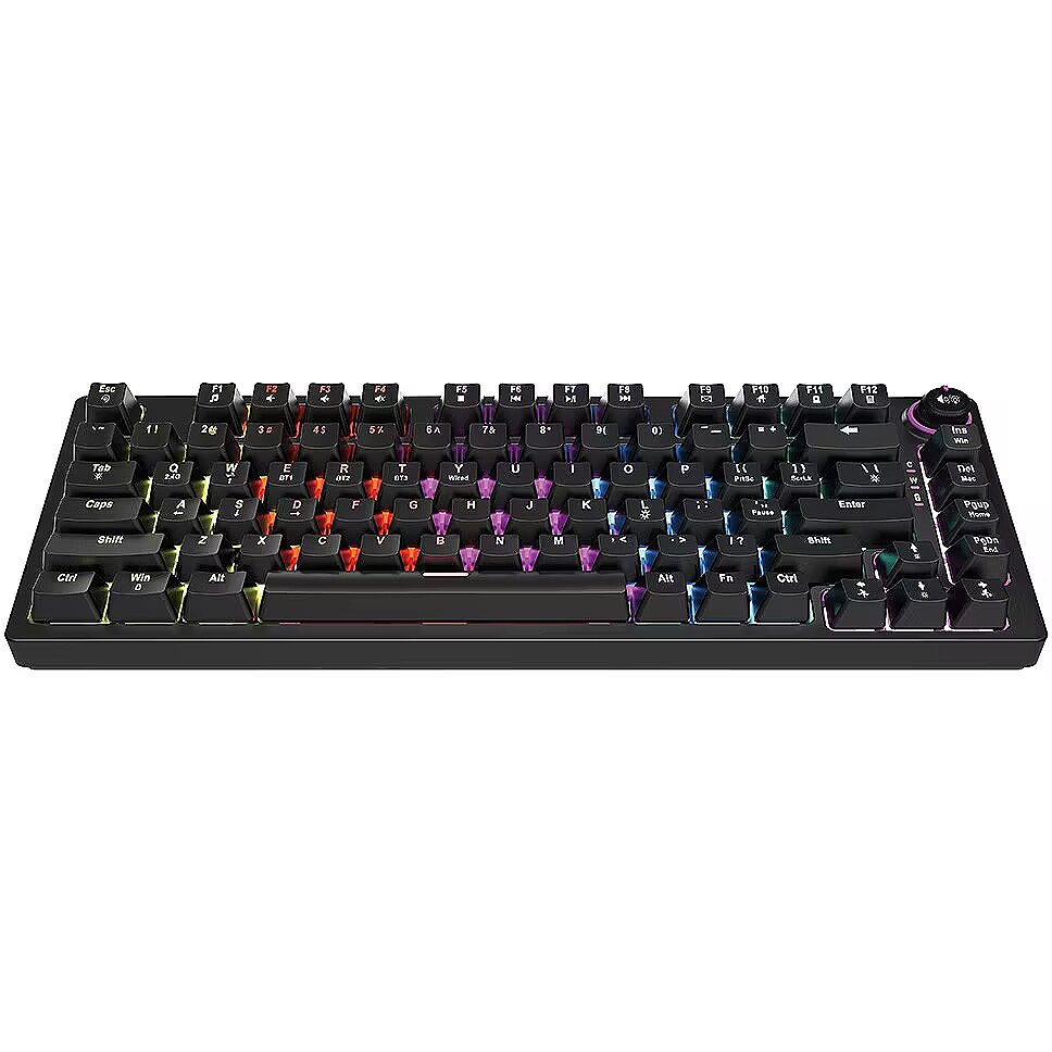 Other features -  Keyboard type: Mechanical  Keyboard layout: US (82 keys)  Interface: 2.4 GHz, Bluetooth, USB  Keycaps: ABS / Pudding ABS (depending on the model)  Switches: Gateron Yellow Pro / Gateron Red Pro (depending on the model)  Switch lifespan: 100 000 000 keystrokes  Radio frequency range: Bluetooth 2400 - 2483.5 MHz  Maximum radio-frequency power transmitted in which this radio device works: 4 dBm e.i.r.p.  Battery: Li-poly 2000 mAh  Working time: 24 200 h (depending on backlight effects)  Keyboard dimensions: 325 × 135 × 35.5 mm  Keyboard weight: 660 20 g  Software: Yes  Key backlight: Full RGB  N-key rollover & Anti-ghosting: Full  Macro support: Yes  Compatibility: Windows Vista, Win 7 / 8 / 10 / 11, Linux, MacOS, Android