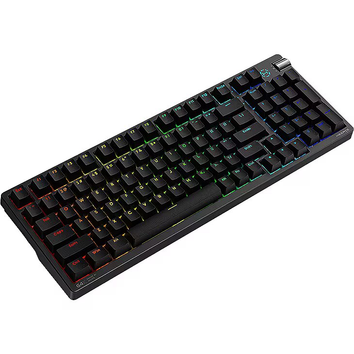 Характеристики• Тип устройства: механическая клавиатура• Количество клавиш: 97• Тип переключателей: механические HECATE (ресурс до 80 млн нажатий)• Подсветка: RGB, 18 режимов• Режимы подключения: 2.4 GHz, Bluetooth, USB-C• Частота опроса: 1000 Hz (в режиме 2.4 GHz)• Задержка: 1 мс• Ёмкость аккумулятора: 4000 mAh• Время работы: до 200 часов без подсветки• Материал кейкапов: PBT double-shot• Управление: металлический ролик (звук/подсветка)• Кабель: USB-C, длина 1.8 м• Совместимость: Windows, macOS• Цвет: чёрный• Размеры: 0.386 м × 0.1376 м × 0.042 м
