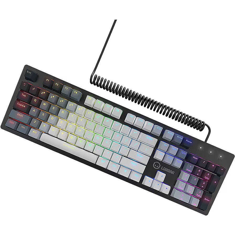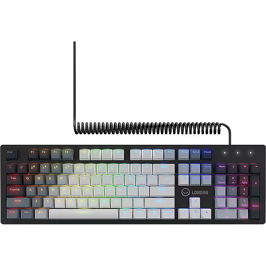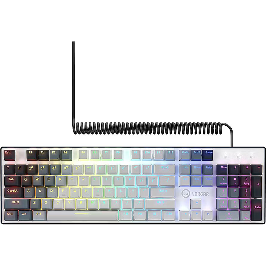 ProductDescription - LORGAR Azar 514, Wired mechanical gaming keyboard, RGB backlight, 1680000 colour variations, 18 modes, keys number: 104, 50M clicks, linear dream switches, spring cable up to 3.4m, ABS plastic+metal, magnetic cover, 450*136*39mm, 1.17kg, white, EN layout