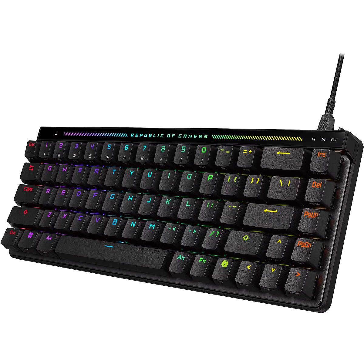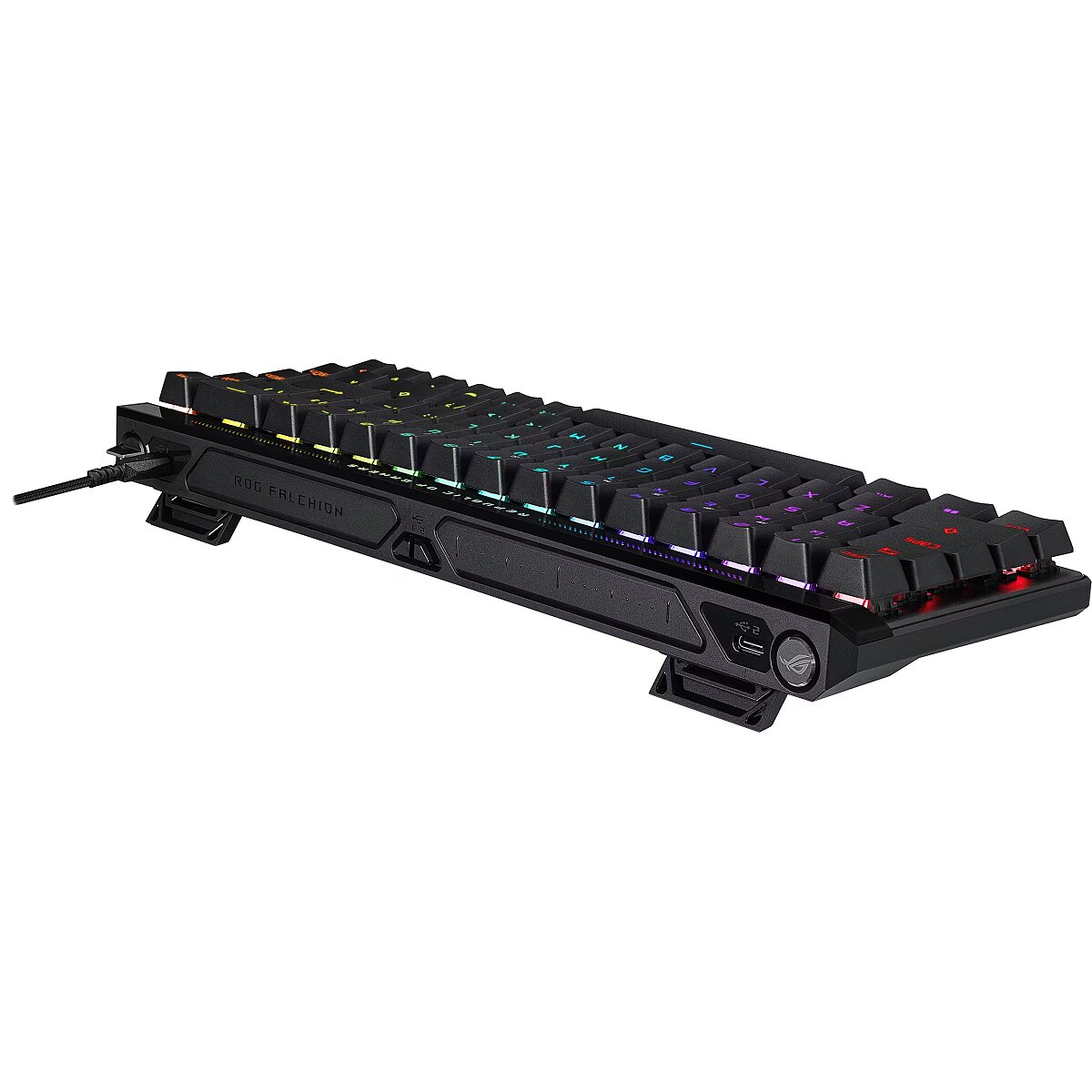LongSummaryDescription - ASUS ROG Falchion Ace HFX. Keyboard form factor: 65%. Keyboard style: Straight. Connectivity technology: Wired, Device interface: USB, Keyboard key switch: Magnetic-mechanical key switch, Keyboard layout: QWERTZ. Backlight type: RGB LED. Recommended usage: Gaming. Product colour: Black