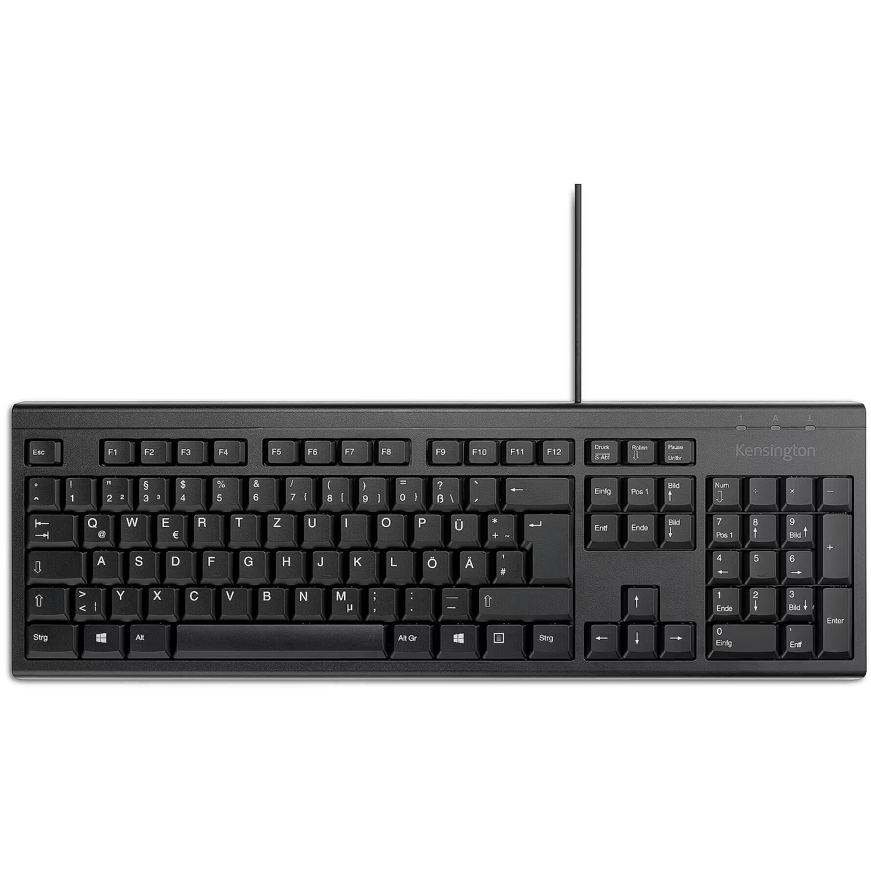 LongSummaryDescription - Kensington K63727DE. Keyboard form factor: Full-size (100%), Connectivity technology: Wired, Device interface: USB, Keyboard key switch: Membrane, Keyboard layout: QWERTZ, Recommended usage: Home/Office. Product colour: Black