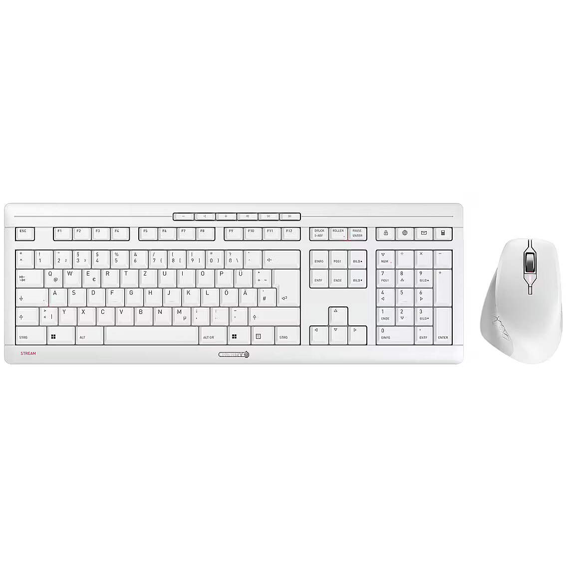 LongSummaryDescription - CHERRY STREAM DESKTOP COMFORT. Keyboard form factor: Full-size (100%). Keyboard style: Straight. Connectivity technology: Wireless, Device interface: RF Wireless, Keyboard key switch: Scissor key switch, Keyboard layout: QWERTZ, Keyboard number of keys: 114, Recommended usage: Home/Office. Product colour: White. Mouse included