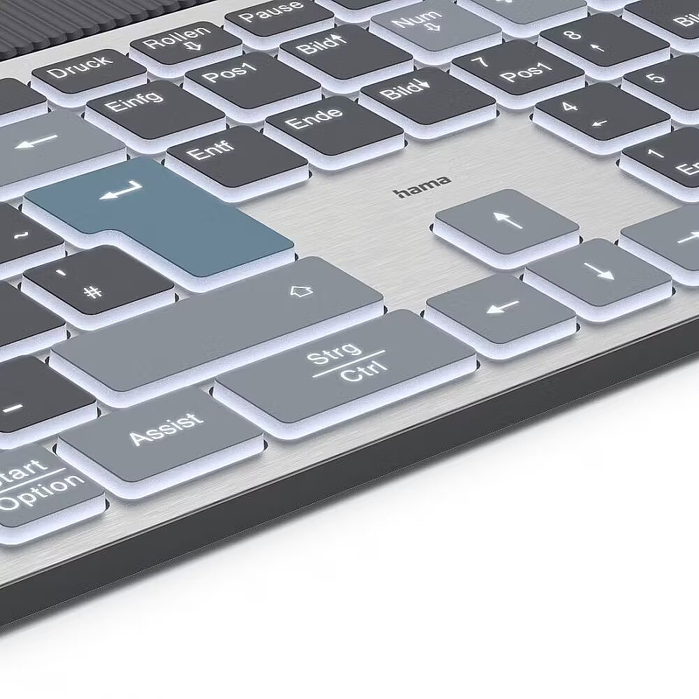 Mechanizm nożowniczy w tej klawiaturze bezprzewodowej Hama zapewnia cichą pracę, idealną do domu lub biura. Regulowane podświetlenie umożliwia komfortową pracę w ciemniejszych pomieszczeniach. Natomiast składane nóżki umożliwiają dostosowanie kąta nachylenia klawiatury, co zapewnia wygodną pozycję dłoni podczas pisania.
