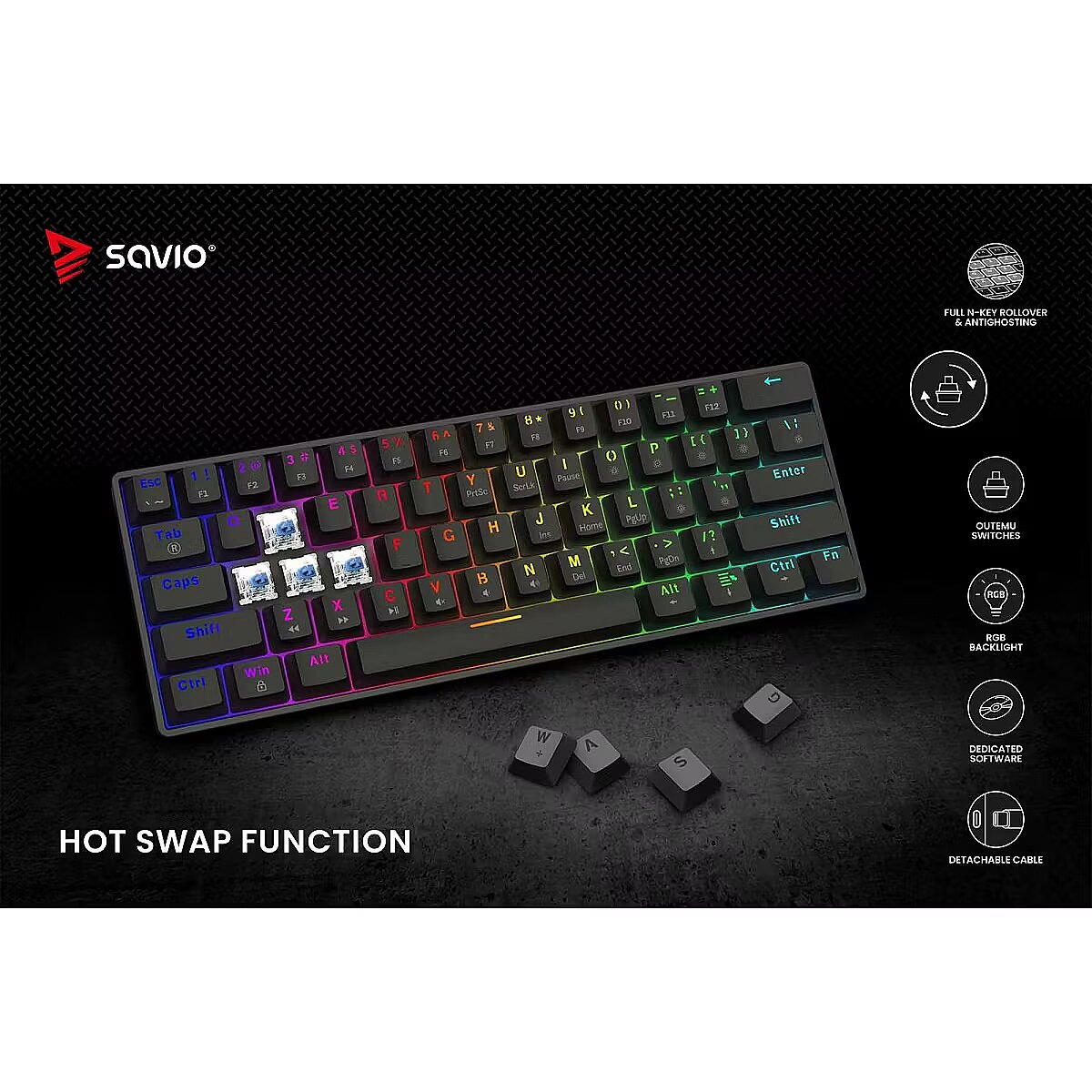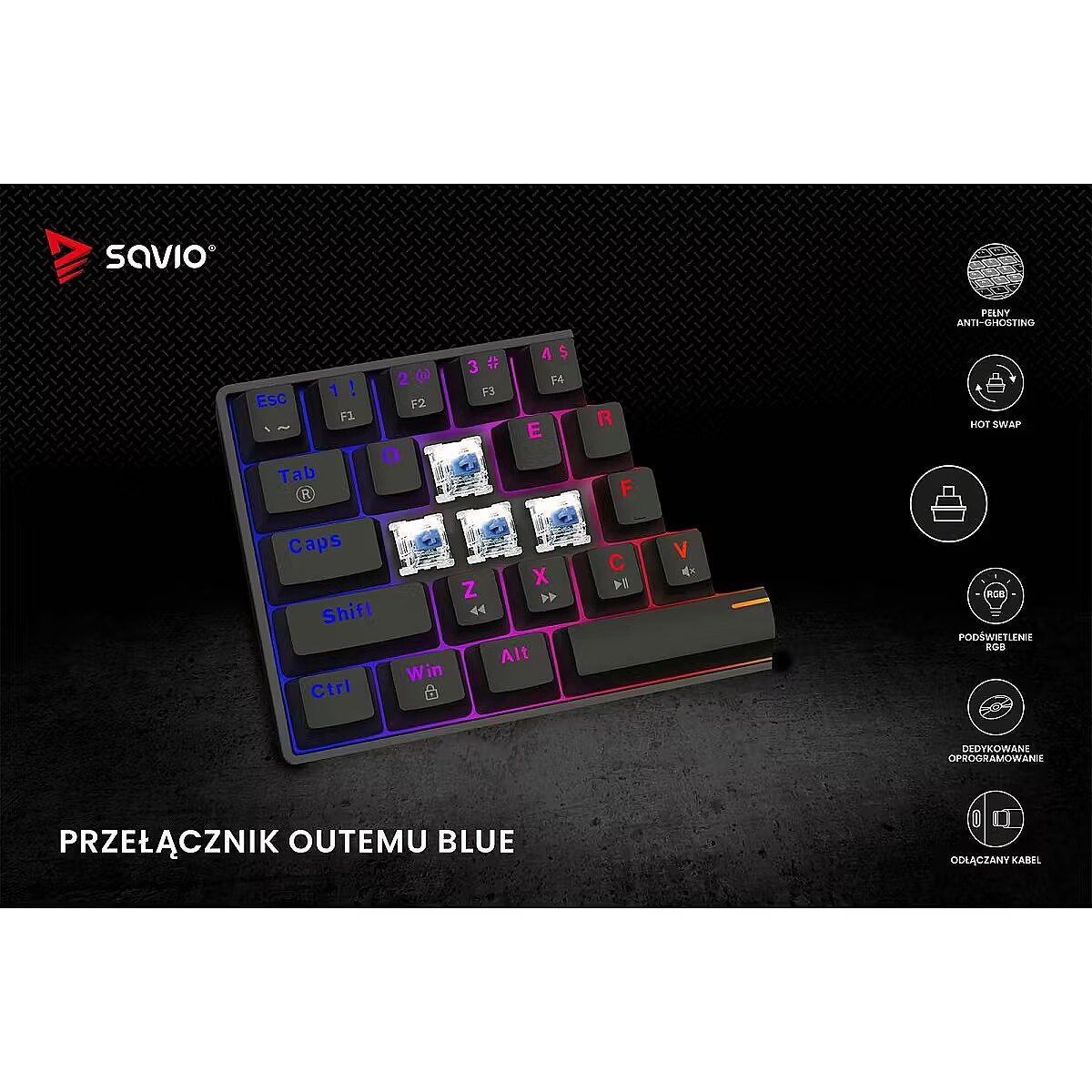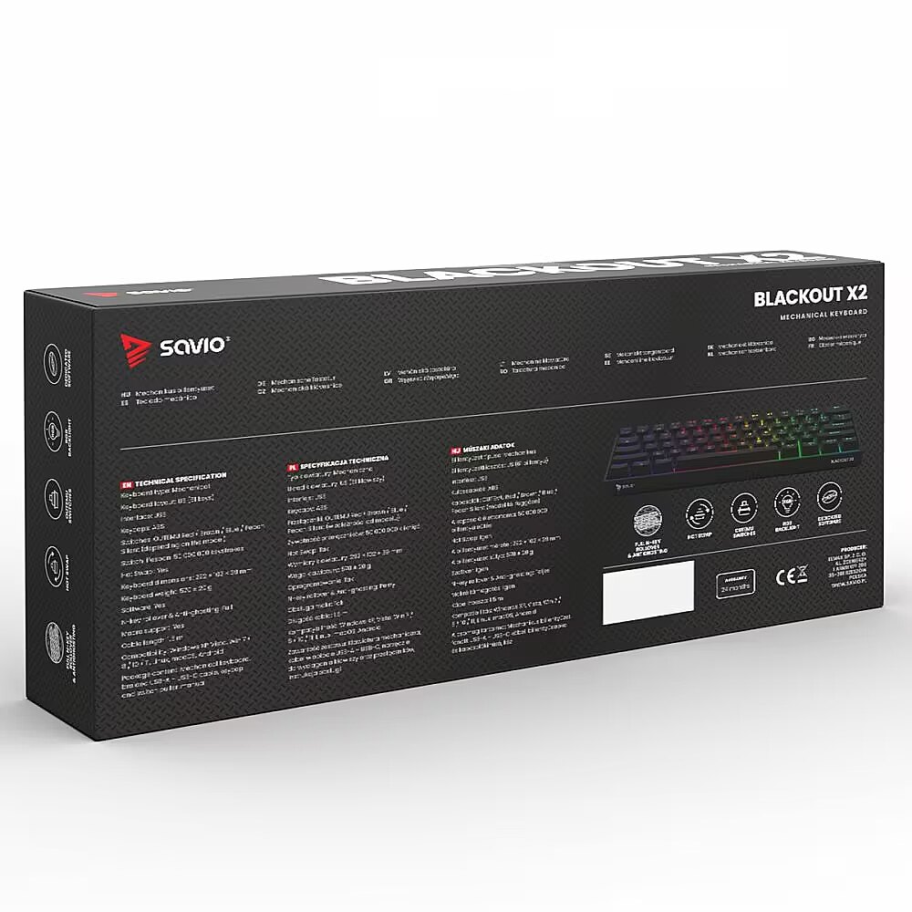 productName - SAVIO BLACKOUT X2 Mechanical Keyboard OUTEMU Blue, Hot Swap