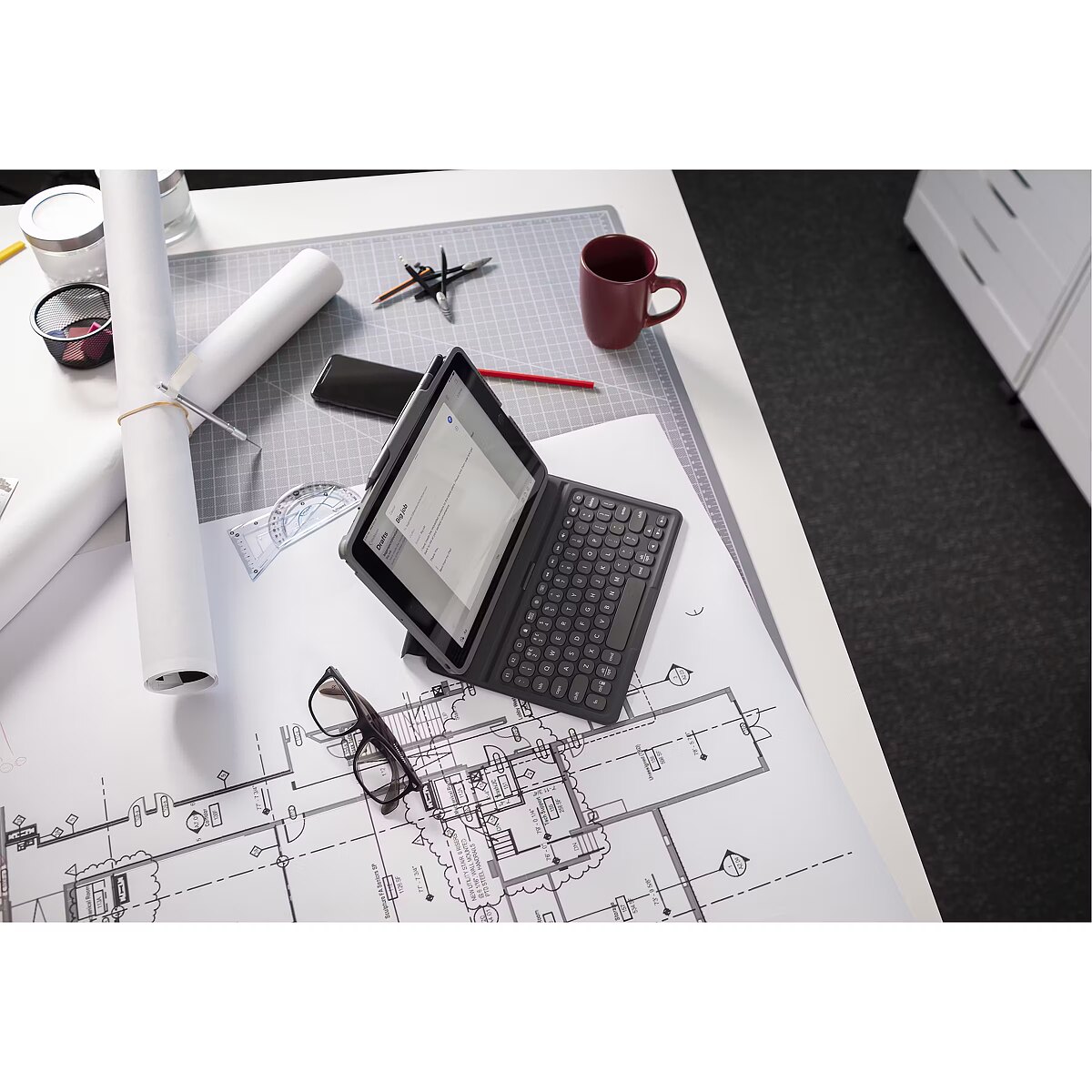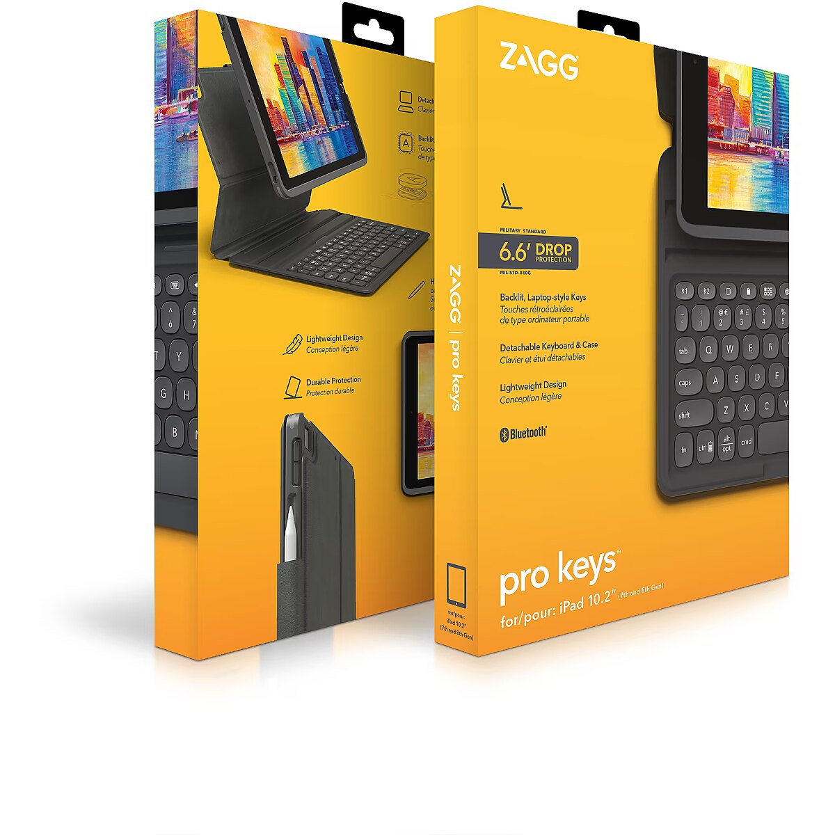 LongDesc - Wireless Keyboard and Detachable Case. Unleash the productive capabilities of your tablet with the Pro Keys wireless keyboard & detachable case. It has everything you need to make any surface an effective workspace. We’ve developed a Pro keyframe with smooth, precise key travel for fast, accurate touch typing. The case allows your stylus to attach magnetically to your iPad. And we’ve included all the extras for an ideal user experience including forward-facing speaker cutouts, backlit keys, and an adjustable stand. Transform your tablet into a lightweight, portable workstation so you can work from anywhere. We’ve optimized Pro Keys with accessories that enhance your tablet’s capabilities, making it truly user-friendly and efficient. The keyboard and case detach to accommodate different uses and environments. The holder for Apple Pencil keeps it, or any other stylus, close at-hand for when inspiration strikes.Our new Pro keyframe design provides optimal key travel for clean, precise keystrokes and an easy, comfortable typing experience. The backlit keys, in seven different colors, make typing in low-light conditions easy. The durable polycarbonate case has a rigid core, rubberized edges and button covers, and corner bumpers, all of which combine to provide 6.6 (2m) of drop protection. The lightweight design fits easily in your bag. The Pro Keys wireless keyboard pairs with two devices simultaneously, like a tablet and your phone, so you can toggle back and forth between them.Type for up to a year before recharging the battery.* Keyboard automatically turns off when folded backwards against the tablet. The sleep/wake function helps preserve battery life when keyboard is not in use.*Based on regular use of one hour per day.