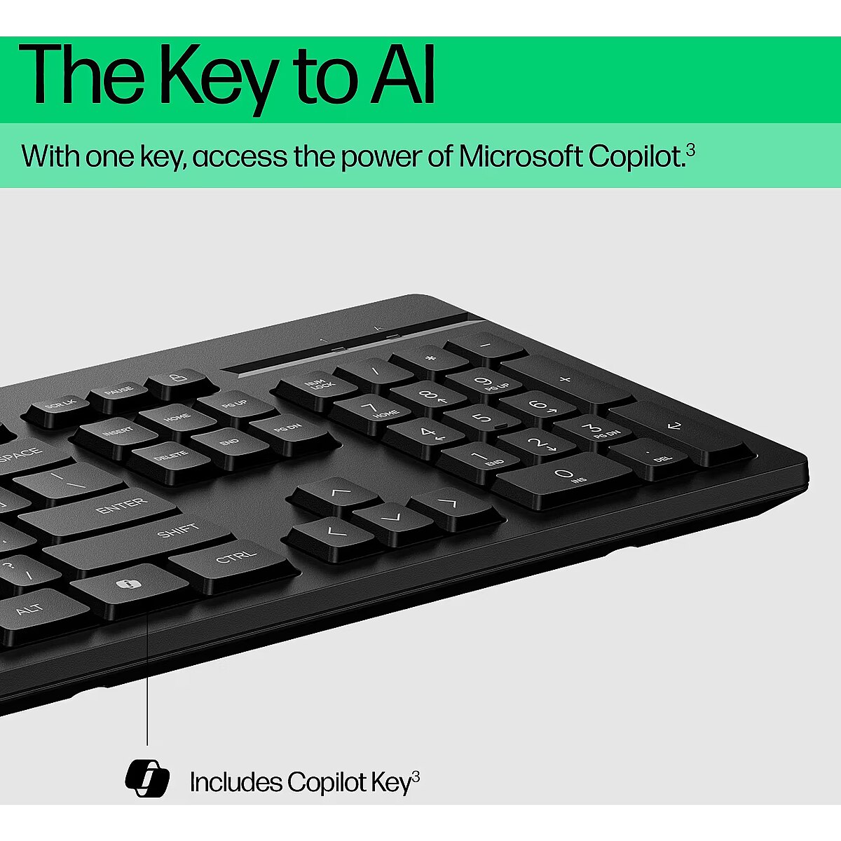 ProdDesc - HP 125 G2 USB Wired Keyboard, Sanitizable, Copilot Key - Black - US ENG (BULK of 12 pcs)