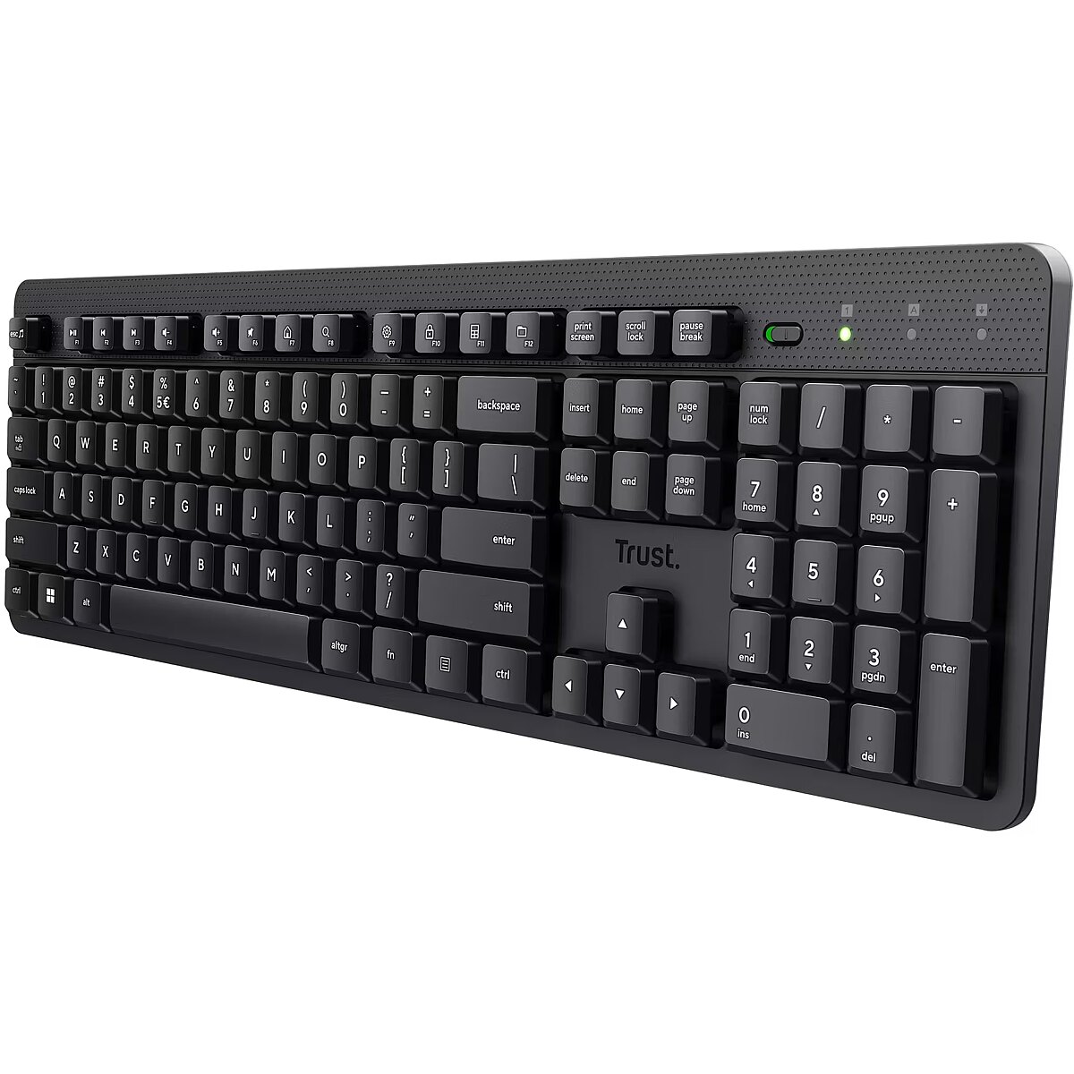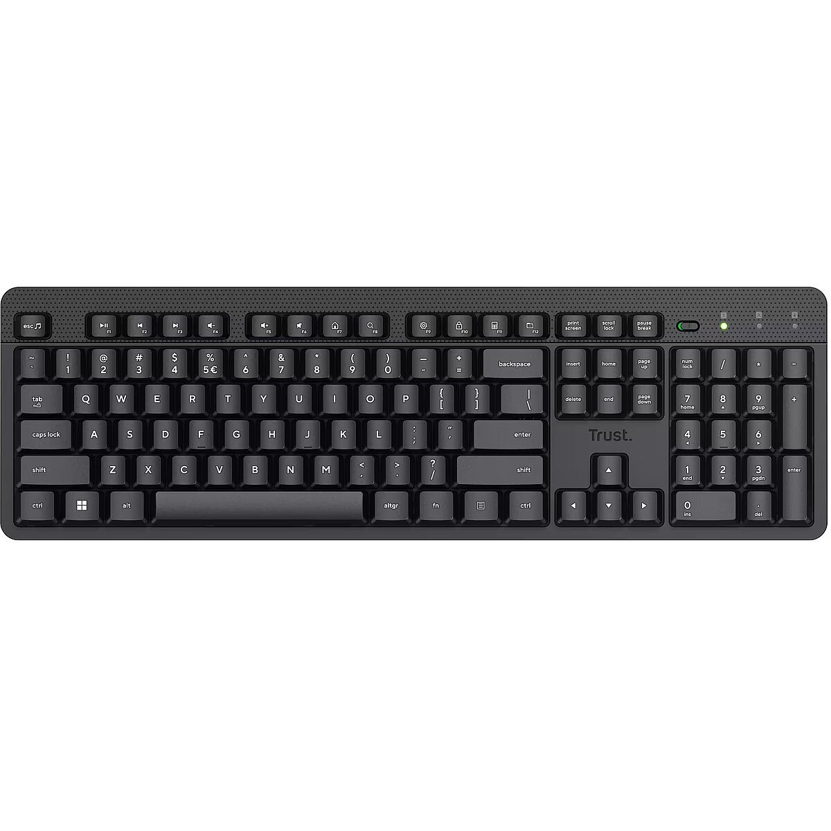 LongSummaryDescription - Trust Ody II. Keyboard form factor: Full-size (100%). Keyboard style: Straight. Connectivity technology: Wireless, Device interface: RF Wireless, Keyboard key switch: Membrane, Keyboard layout: QWERTZ, Recommended usage: Office. Product colour: Black