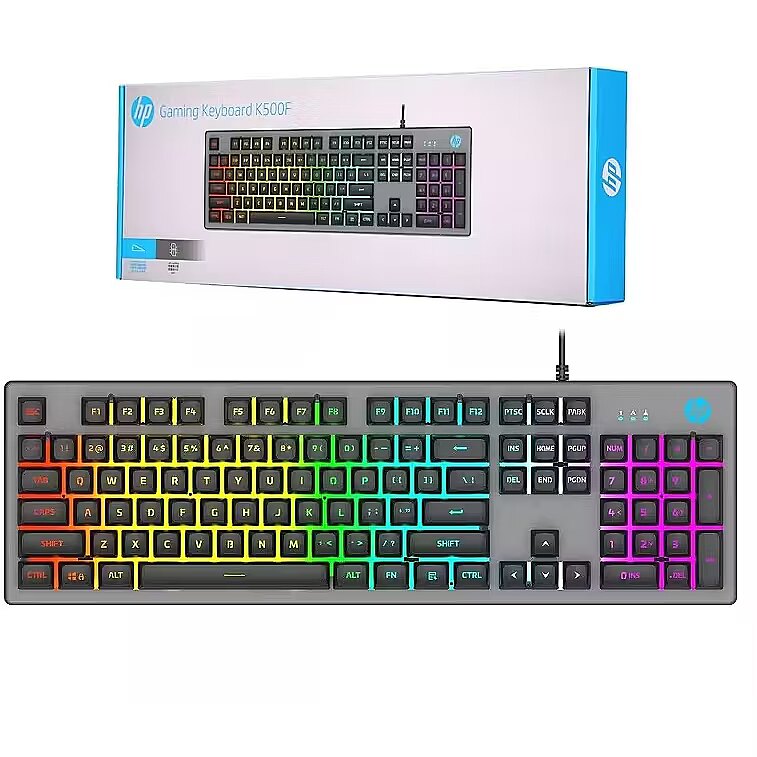 description_en - Upgrade your gaming experience with the HP K500F membrane gaming keyboard in gun metal color. This keyboard boasts a standard QWERTY layout with English language support, making it easy to type in any game or application. Wired connectivity ensures that your keyboard will always respond immediately to your inputs, with no delay or lag. The illuminated keys add a touch of style and functionality to your gaming setup, making it easy to find the right keys in low-light situations. The HP K500F is brand new and ready to take your gaming to the next level. Get yours today!