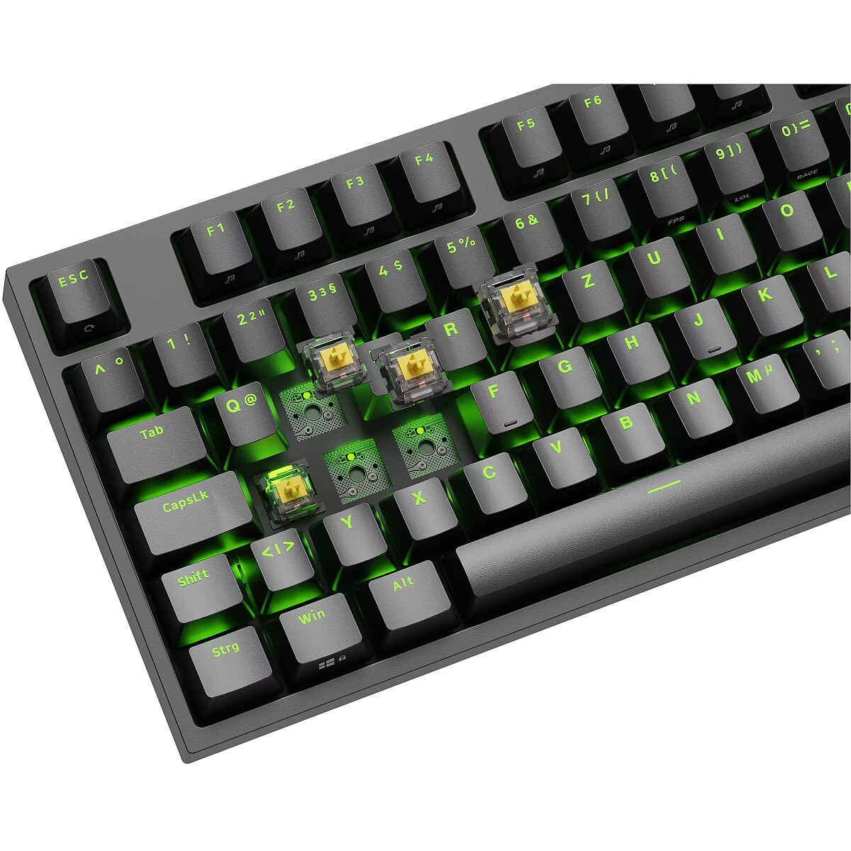 LongDesc - The new incarnation of a legend. Welcome Genesis Thor 404 TKL - the successor to the acclaimed and award-winning Genesis Thor 303 TKL model. A completely new design (non-floating key), Gateron Yellow Pro switches providing lightning-fast response, and Hot-Swap technology allowing tool-free mechanism replacement are not its only advantages. New, better, more advanced. Here is Genesis Thor 404 TKL with DE key layout. NEW SWITCHES. GREATER PRECISION Do you expect smooth movement and the dynamism that will help you dominate your opponents? We understand it well, which is why we equipped Genesis Thor 404 TKL with advanced Gateron Yellow Pro switches with a linear characteristic. With a durability of 60 million clicks, activation after a 2 mm press, and a actuation force of only 50 g, that's not all. Combined with a 1 ms response time, Gateron Yellow Pro offers significantly better experiences compared to classic Gateron Yellow switches. Quieter, smoother, and faster. Want to improve your gaming performance? You can count on it.   DETAILS THAT MAKE A DIFFERENCE Switches are one thing. However, we haven't forgotten about key elements like stabilisers and lubrication. It is thanks to them that we were able to maximize the performance of Gateron Yellow Pro. The result? Smoother switch operation and quieter performance in any situation.   REPLACE A SWITCH IN JUST A FEW SECONDS Do you want to change a switch without any additional tools or technical knowledge? Get to know the Hot-Swap technique, which allows you to do it in just a few seconds. Thanks to it, you can not only customize the key operation to your own preferences but also extend its lifespan by replacing the mechanism with a brand new one. Simple, isn't it?   QUIETER THAN USUAL Had enough of noise? Linear Gateron Yellow Pro switches are much quieter than their brown and blue counterparts. Furthermore, to meet the expectations of demanding users, we've placed a special sound-absorbing foam inside Genesis Thor 404 TKL, which absorbs vibrations and dampens key strikes during the most dynamic actions. With Genesis Thor 404 TKL, nighttime gaming becomes possible.   SUPRISING CRAFTSMANSHIP Greater key stability and a more compact design. Discover the benefits of a closed housing that won't budge even during the most dynamic actions. What's more, the massive frame of the device also means no bending under heavy pressure. Keys? We haven't forgotten about them either. Classic profiling and Double-Shot technology ensure trouble-free operation for a really long time. Looking for a keyboard for years to come? Genesis Thor 404 TKL will meet your expectations.