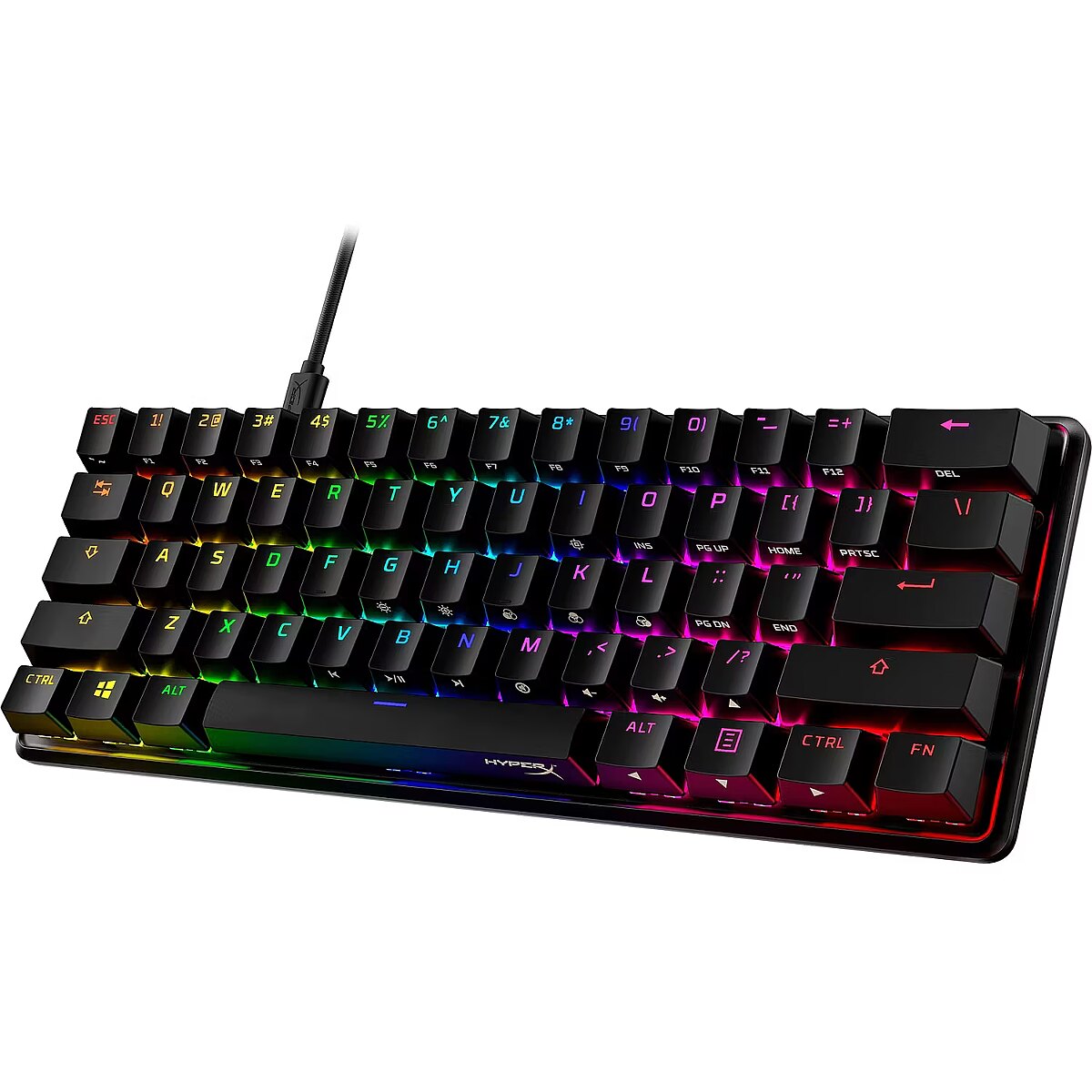 Description - HyperX Alloy Origins 60 Mechanical Gaming Keyboard The HyperX Alloy Origins™ 60 is a supremely portable 60% form factor keyboard that gives you more room for sweeping mouse movements. It features a durable, full aluminum body, and reliable HyperX switches balanced for speed and performance which are rated to withstand 80 million keypresses. The stock double shot PBT keycaps have secondary functions printed on them so you can quickly locate additional functionality. Let your style shine bright with the HyperX switches’ exposed LED design, and stunning lighting effects. Further customize your keyboard with macros, personalized lighting profiles, and more with HyperX NGENUITY software. Petite 60% form factor HyperX mechanical switches1 Full aircraft-grade aluminum body Double shot PBT keycaps with side-printed secondary functions RGB backlit keys with radiant lighting effects Advanced customization with HyperX NGENUITY software Three adjustable keyboard angles and detachable USB-C cable Included keycap puller and additional keycaps Onboard memory Game Mode, 100% anti-ghosting, and N-key rollover functionalities Multi-platform compatibility