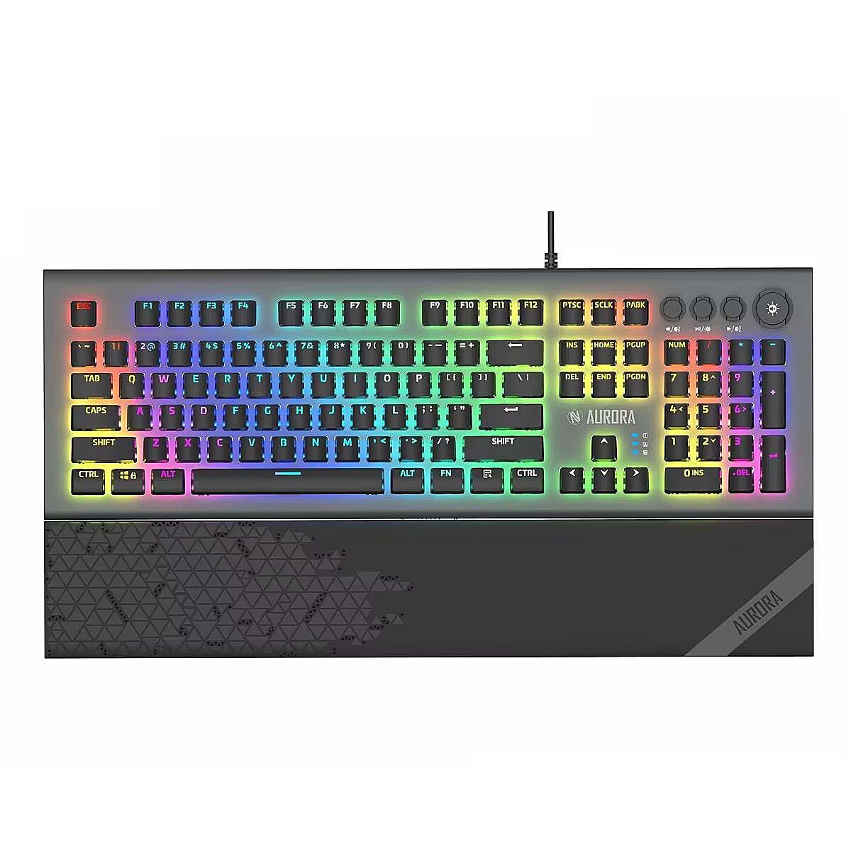 To co wyróżnia serię Aurora to wbudowane pokrętło trybu podświetlenia czy zmiany głośności. Podświetlenie można wyłączyć, regulować jasność a także dopasować do własnych potrzeb. Klawiatura K-5 posiada magnetyczną podstawkę pod nadgarstki, która redukuje zmęczenie i wygląda efektownie dzięki zastosowaniu podświetlanego światłowodu RGB.