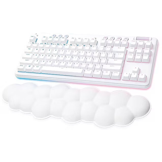 Description - The G715 from the Aurora collection is a LIGHTSPEED and Bluetooth gaming-grade wireless keyboard, designed with comfort in mind and featuring a cloud-soft palm rest. Fully equipped with RGB lighting and your choice of GX mechanical switches. Comes in a White Mist option. Coloured accessories are sold separately. Exactly your type The G715 Wireless Gaming Keyboard from the Aurora Collection is a compact USB mechanical keyboard without a numeric section, giving an intimate feel with stunning performance. Express yourself, play your way. Ultimate comfort, intimate space Drift away with the G715's dreamy aesthetic and included comfortable palm rest. The compact layout with no numeric keypad and height adjustment gives you good all-day gaming comfort. Styling: LightSync LIGHTSYNC brings your game to life with soft, ethereal peripheral and under-key backlighting. Show off your style with the pre-made four immersive Play Mood animations specific to the Aurora collection. Or customise your own lighting layout and animation effects with 16.8M programmable RGB colours and free G HUB software. Play on. Play without limits. Stay in the game with ultra-reactive LIGHTSPEED wireless connectivity. Switch to Bluetooth mode with the touch of a button. Enjoy a battery life of 25 hours of play2Battery life measured with LEDs on at maximum brightness until depleted. May vary depending on battery discharge characteristics, usage and operating conditions.On your desk, on your lap, on your couch, in another dimension. Connect whenever you want with the included USB-C to USB-A cable to charge the battery or simply stay in wired mode. You can also connect both the G715 and the G705 wireless gaming mouse using the same LIGHTSPEED USB receiver. Save USB ports and enjoy a streamlined desktop without sacrificing performance. Gaming-grade technology at the swipe of a finger Start (good) gaming with the satisfying feel of GX mechanical switches, the flexibility of wireless or wired gaming and full media control at your fingertips. Everything you need to play your best and instantly take control of your music, movies and more. Lightning-fast volume knob. Be sure to choose the GX switch that's right for you. Linear is quiet and has little friction. Tactile offers feedback that you can feel and even react to. Clicky is the usual favourite of players with the widest feedback. Choose your gear from the G Hub. You have total control over your playing style and aesthetics. Show off yourself and use the G HUB to customise the RGB to your preference. Switch to Game Mode and disable certain keys during gameplay so your epic adventures aren't interrupted. Customise which keys deactivate with the G HUB. Customise and program as many as you like, or just start playing straight away with pre-defined lighting and settings. The G715 is always ready to go. Customise to your liking You decide. Customise it to your liking Customise it with keycaps and an easy-to-use key extractor key. Super-comfortable, interchangeable top plates in Pink Dawn and Green Flash colours remain available; to keep your hardware fresh, you can also use the interchangeable White Mist set. Create your own designs, mix and match colours to your heart's content.