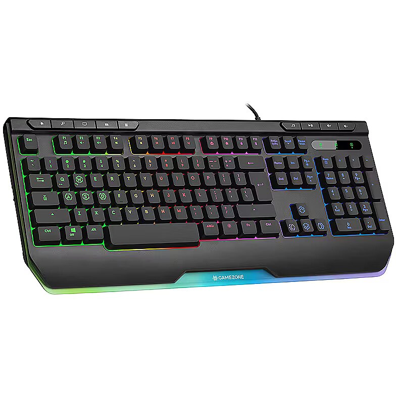 Description - Tracer GAMEZONE RAY X USB gaming keyboard Get ready for exciting gaming with the Tracer RAY X keyboard that will help you crush your opponent. The keyboard is perfect for both a beginner player and an advanced gaming freak. High button travel, currently most frequently chosen by gamers due to its precision of movement, well-thought-out design and high-quality workmanship allow for comfortable use not only during gaming, but also for everyday office work. An interesting visual variation is the LED backlighting of the keys, which will certainly make using the keyboard more enjoyable during evening gaming marathons. The RAY X keyboard belongs to the popular GAMEZONE line designed specifically to meet the needs of demanding gamers who expect advanced functions and parameters from gaming equipment. High-quality materials used to make GAMEZONE products guarantee long service life even with very intensive use. Equipped with additional functions, you can adapt them perfectly to your needs. 26 Rollover keys 11 multimedia buttons Anti-ghosting function High key travel RGB backlight USB connection RGB backlight Impressive rainbow illumination will make the evening games more enjoyable. Multi-colored LED backlighting of the keys will allow you to adjust the appearance of the Tracer RAY X keyboard to your style and mood. Enhance your gaming experience thanks to modern RGB backlighting. Advantage during the game Maintain full control while playing. The Anti-ghosting function will ensure that nothing will disturb you when you press several keys at the same time to issue a key command. Anti-ghosting ensures optimal gaming performance and full control when issuing multiple commands simultaneously, even if that means pressing all buttons on the keyboard at the same time. Multimedia keys and high quality The Tracer RAY X keyboard is equipped with 11 multimedia buttons, which significantly increase the user's comfort when using the device. Using them, you can, for example, quickly manage sound.