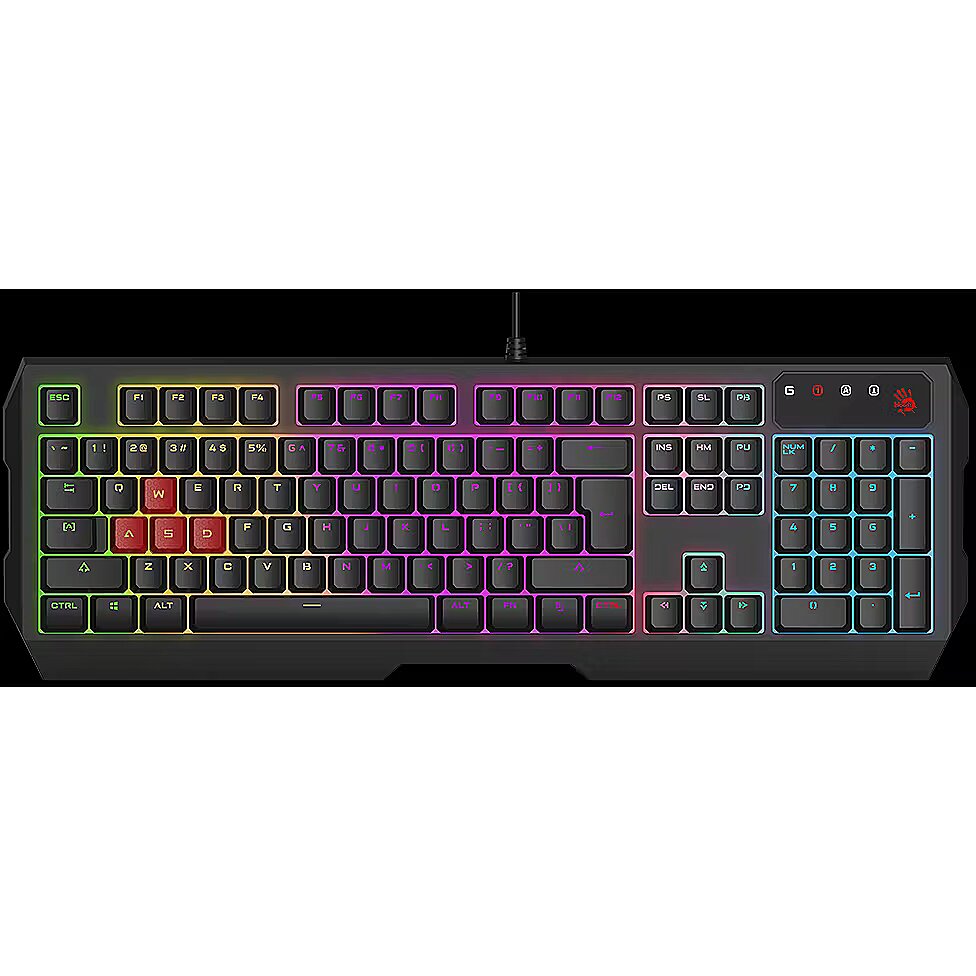 Description - B140N Neon keyboard for gamers Key response 1 ms Instant response is guaranteed thanks to 1000 Hz ultrapolling technology, which ensures an ultra-fast 1 ms response time. Elite Bloody KeyDominator software Create your own macro keys with Bloody KeyDominator software. Adjustable backlight Lighting Effects: FN + F12 (Solid/Breathing/Off); Brightness: FN + arrow Multimedia hotkeys Press FN + F1 ~ F7 to apply multimedia hotkeys. Mute, volume -/+, play/pause, stop, previous/next track. Game mode Press Fn + F8 to disable Windows keys and avoid interruptions during your gaming session.