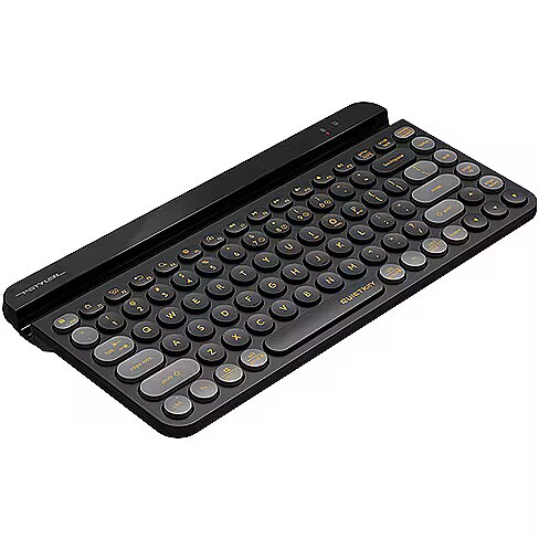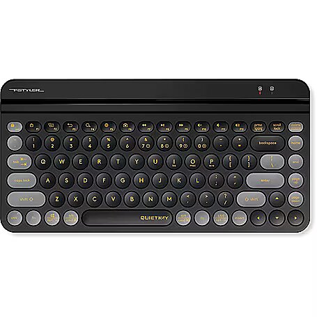 Description - FBK30 Bluetooth and 2.4G wireless connectivity Thanks to the patented QuietKey mechanism, combining high-elastic silicone and high-quality lubricant, it effectively reduces key rebound vibrations and eliminates friction noise while typing. Silent key The patented, innovative "QuietKey" technology is designed specifically to ensure quiet typing, reducing noise from 35 dB to 14 dB. Dual connection mode [BT+2.4 GHz] Bluetooth and 2.4 GHz connection. Replacing the operating system Compatible with Windows/Mac/iOS/Android, easily change layout from one operating system to another. Round, low profile keys in retro style The ultra-thin, round design of the retro-style keys allows for comfortable typing. Integrated tablet stand Hold your devices securely at the right angle for reading. Compact and fashionable Compact size of 86 keys, great keyboard that takes up little space.