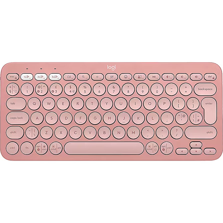 Description - PEBBLE KEYS 2 K380S Slim, minimalist Bluetooth® keyboard with customizable keys. Tonal Rose Slim, lightweight, minimalist design made with recycled plastic Pebble Keys 2 K380s plastic content: minimum 49% recycled plastic, excluding plastic in printed wiring assembly (PWA) and packaging Multi-device pairing (up to 3 devices) Customizable Fn shortcut keys with Logi Options+ 2Available on Windows and macOS at logi.com/optionsplus Comfy and quiet laptop-like typing with scooped, low-profile keys