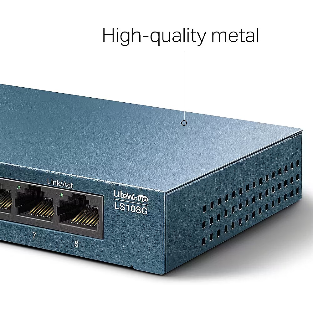 LongDesc - Increase Your Network Speed and Save EnergyLet LiteWave Bring You Lighter Network LifeThe TP-Link LiteWave Series Unmanaged Switches provide easy and affordable way to expand your wired network. They are easy to use and reliable. With these plug-and-play switches, you can expand your network connections to multiple devices instantly. With all ports support Auto-MDI/MDIX, there’s no need to worry about the type of cable to use.Go Green with Your EthernetThe LiteWave Series also supports energy-efficient technology, helping you save power and money. Power consumption automatically adjusts according to link status and cable length, allowing you to expand your network while minimizing your carbon footprint. Save the planet and lower your energy bills — it’s a win-win!Durable Metal CasingThe interior components of LS108G are protected by high-quality metal casing to ensure a long product life. Having passed an array of stringent reliability tests, LS108G delivers switching performance you can depend on. Its compact size makes it ideal for deployment on desktops or work benches.Use Where You Need, However You NeedThe LS108G is fully compatible with networked devices such as computers, printers, webcams, IPTVs. It has a wide range of application scenarios and is suitable for networking in school dormitories, surveillance, homes, and small businesses.