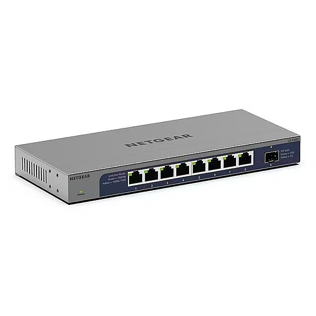 LongDesc - The GS108X comes with 8 Gigabit Ethernet ports and 10 Gigabit SFP+ uplink port. Gigabit unmanaged switches help businesses cost-effectively expand their network to Gigabit speeds and higher port counts.This GS108X is energy efficient, built to last, and rigorously tested to provide the reliability businesses need.802.1p traffic prioritization and jumbo frame support allow for seamless integration with more sophisticated networks.The GS108X offers flexible mounting options - they can be mounted on a wall or can be used as a desktop switch.Moreover the compact and fanless design makes the GS108X ideal for any home or business environment.Features- PLUG-AND-PLAYSimple set up with no software to install or configuration needed- FULL PERFORMANCENon-blocking switching architecture for maximum throughput at wire speed- SILENT OPERATIONThe fanless design means zero added noise wherever its located, making it ideal for noise-sensitive environments- ENERGY EFFICIENTDesigned to optimize power usage lowering its cost to operate- METAL CASEDurable and rugged case for long-lasting performance- VERSATILE MOUNTING OPTIONSSupports desktop and wall placement with included wall-mount kit