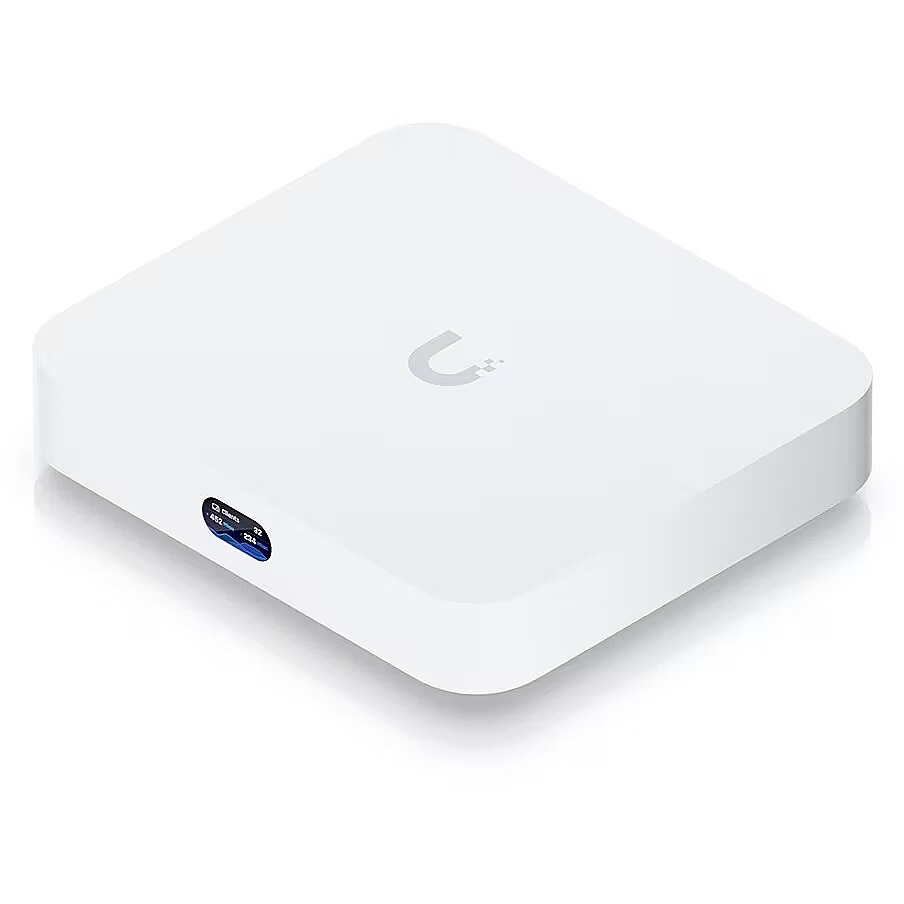Description - UBIQUITI UCG-ULTRA Compact Cloud Gateway with 30+ UniFi device / 300+ client support, 1 Gbps IPS routing, and multi-WAN load balancing. + Runs UniFi Network for full-stack network management + Manages 30+ UniFi Network devices and 300+ clients + 1 Gbps routing with IDS/IPS + Multi-WAN load balancing + 0.96" LCM status display + USB-C powered (adapter included)