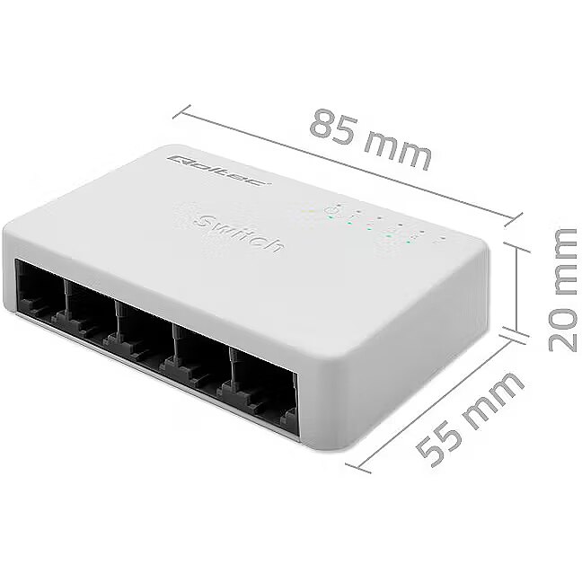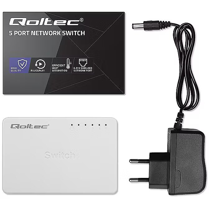 Name - Qoltec 52245 Przełącznik sieciowy 5 x portów RJ45 | 100Mbps | LAN