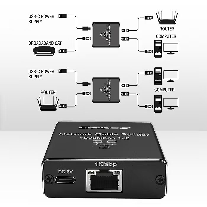 name - Splitter mini SWITCH 1x2 port RJ45 1000Mbps