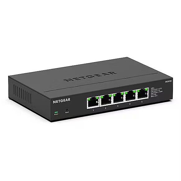 LongDesc - NETGEAR 5-port 2.5G Multi-Gigabit Ethernet Plus SwitchMULTI-GIGABIT ETHERNET5 ports provide up to 2.5 Gbps of dedicated, non-blocking bandwidth eachNON-BLOCKING SWITCHING25Gbps (10/100/1000 Mbps) line rate fabric ensures congestion-free connectivity to your devicesAUTO-NEGOTIATIONAutomatic connection at the highest common speed between the switch and an end deviceFANLESS DESIGNSilent operation makes this switch perfect for noise-sensitive environmentsVERSITILE MOUNTING OPTIONSInstall your switch on your desktop or mount it to your wall with the hardware provided in the boxENERGY EFFICIENTEnergy Efficient Ethernet (IEEE 802.3az) standard, which reduces energy consumption when there is light traffic on an active port or when there is no link or no activity detected