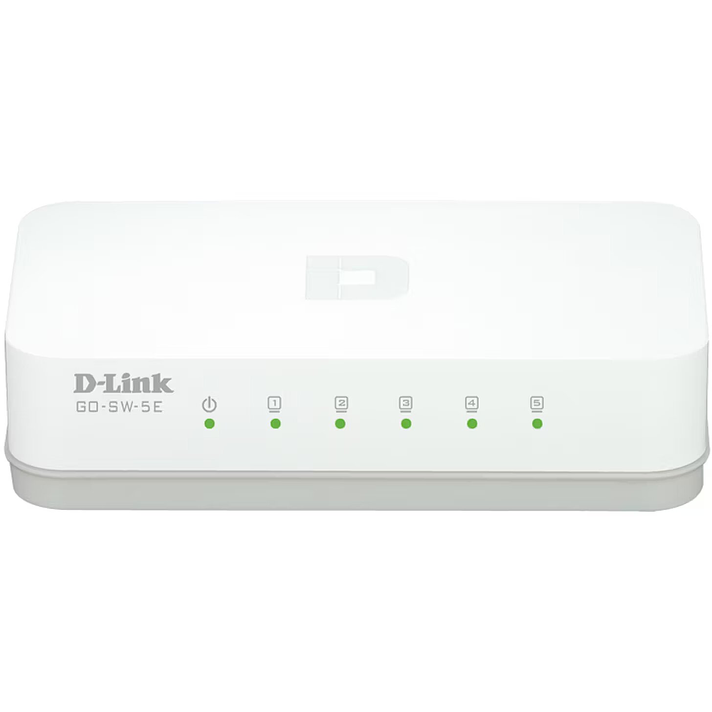 LongDesc - The dlinkgo GO-SW-5E 5-Port Fast Ethernet Easy Desktop Switch allows you to quickly set up a fast, reliable, and efficient wired network in your home or office. The GO-SW-5E is an unmanaged 10/100Mbps switch designed to enhance small workgroup performance while providing a high level of flexibility. Powerful yet easy to use, this device allows users to simply plug any port to either a 10Mbps or 100Mbps network to multiply bandwidths, boost response time and satisfy heavy load demands. Connect the GO-SW-5E to multiple computers to share files and folders, or connect it to a router to share an Internet connection.Effortless High Speed Networking.The GO-SW-5E features easy access auto sensing 10/100 Mbps Ethernet ports with a LED indicator for each port to quickly distinguish link status and activity. These ports detect the network speed and auto-negotiate between 10BASE-T and 100BASE-TX, as well as between full and half-duplex, to get you the maximum speed possible for each device connected to your network, for faster browsing, video streaming, and online gaming. The GO-SW-5E also supports Auto MDI/MDIX Crossover, allowing you to connect each port directly to a server, hub, router, or switch using regular straight-through twisted-pair Ethernet cables.Reliable Plug and Play Installation.The GO-SW-5E is a Plug-and-Play device that requires no configuration, so setup is simple and hassle-free, so right away you’re easily able to connect multiple computers, share files, music, and video across your home or small office network, or even create a multi-player gaming environment. 802.3x flow control on each port minimizes dropped packets when the port’s receiving buffer is full. This gives you a more reliable connection for all of your connected devices.Environmentally Friendly.The GO-SW-5E features D-Link Green technology, which drastically reduces energy consumption. If there is no computer connected to a port or a connected computer is powered off, the port will automatically enter ‘sleep mode’, greatly reducing the power used for that port without interrupting the network connection. In addition, the switch automatically detects the length of connected Ethernet cables and adjusts their power usage accordingly without affecting performance. This considerably lowers overall energy usage, which both saves you money and helps the environment, without the need for micro-management.Compact and Silent.The GO-SW-5E has a sleek and compact design, so that you can place it in any easily accessible location and have it stay out of your way. The power connector and ports are all located at the rear of the switch allowing you to tuck the cables away conveniently. The GO-SW-5E does not use a fan, so the switch operates silently but effectively, letting you watch movies streamed off the Internet without distraction, or browse the web in peace.
